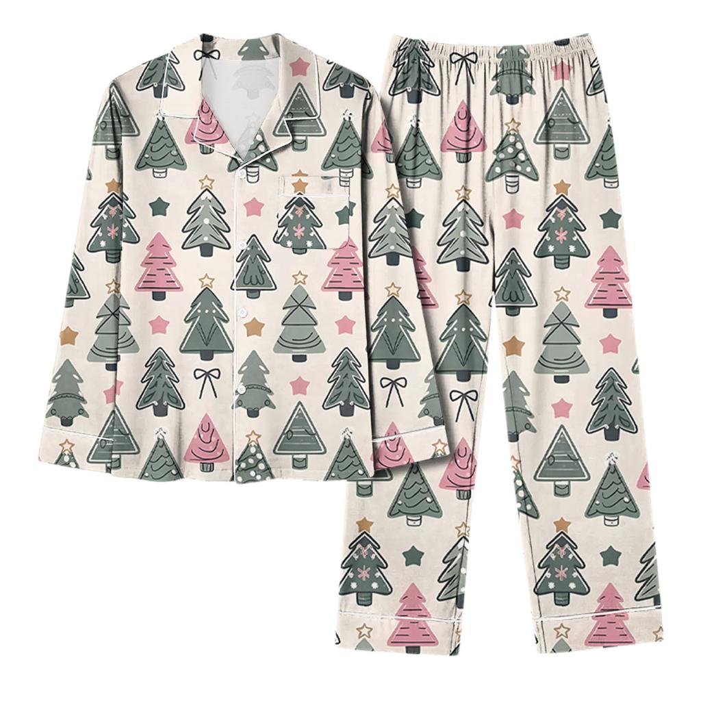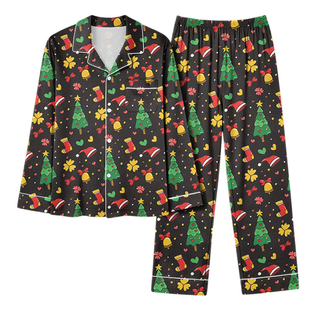 Женский повседневный модный комплект для дома с длинным рукавом и брюками с рождественским принтом