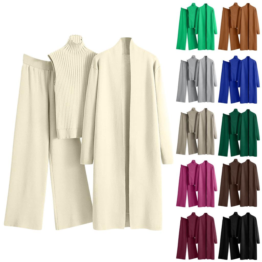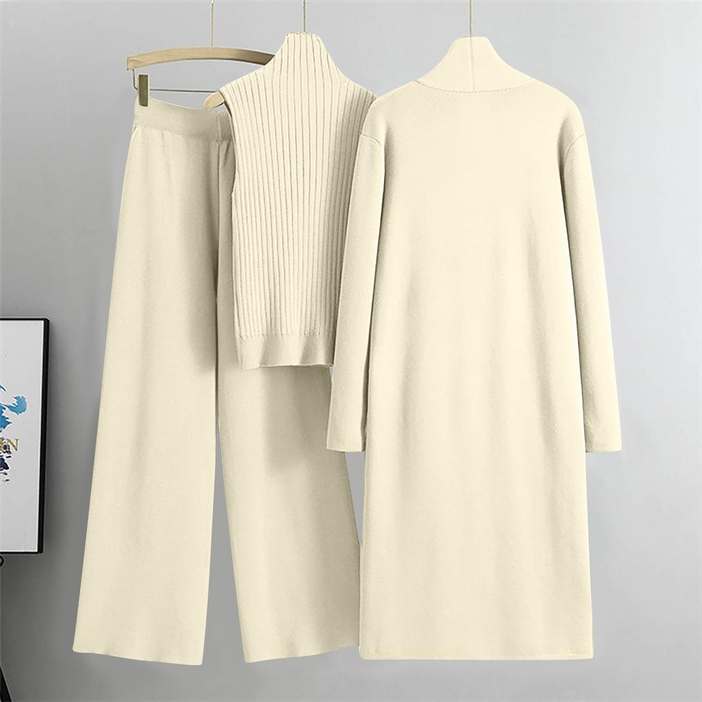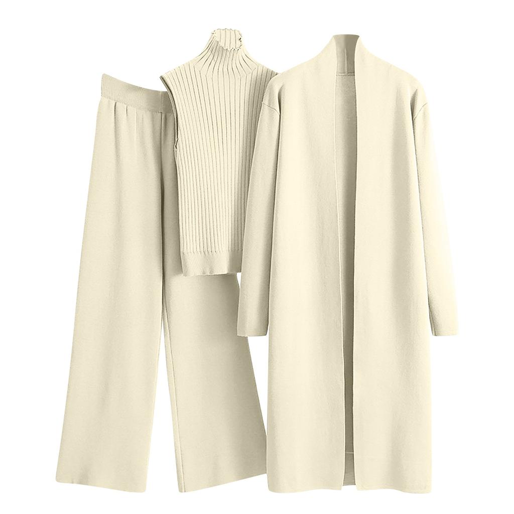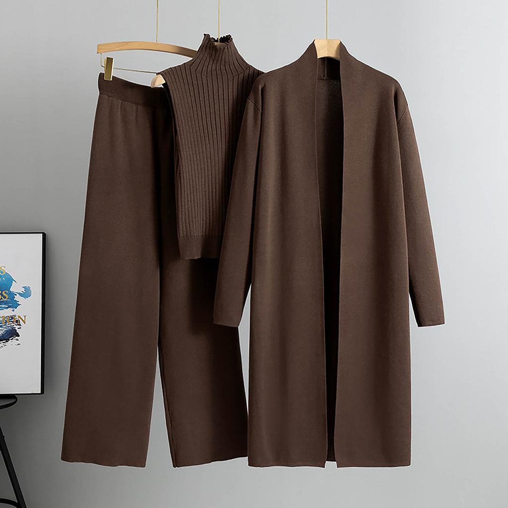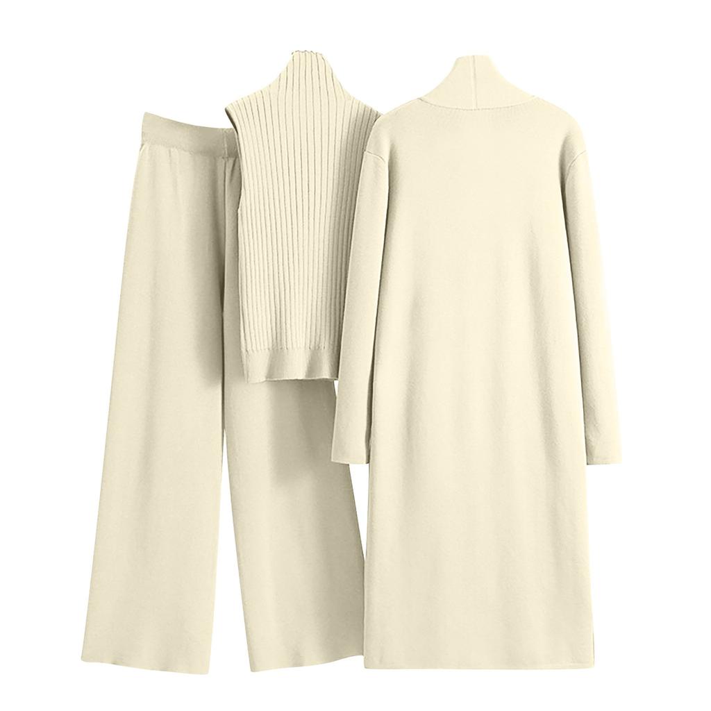 Женский модный ленивый трикотажный костюм без рукавов жилет свитер кардиган брюки комплект из трех предметов
