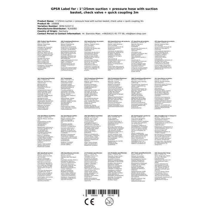 Kit Tuyau Aspiration et Refoulement 25mm, 3m avec Crépine et Raccord Rapide