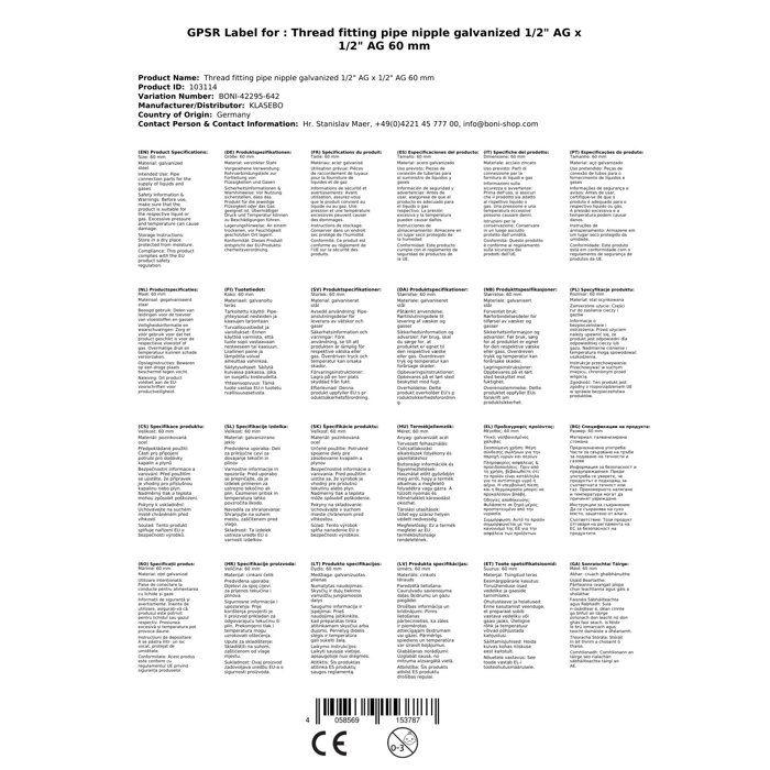 Оцинкованный резьбовой ниппель 1/2 дюйма, фитинг для водопровода