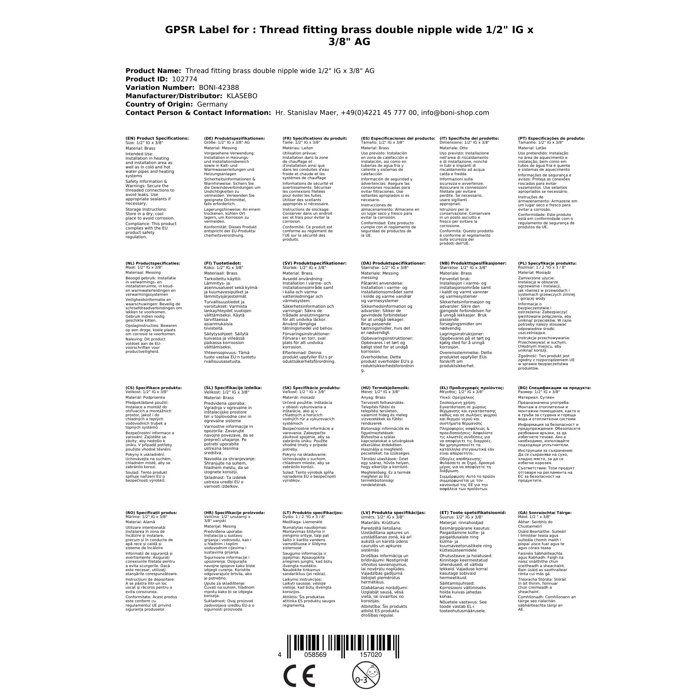 Raccord Laiton Double Mamelon 1/2" x 3/8" - Plomberie Chauffage