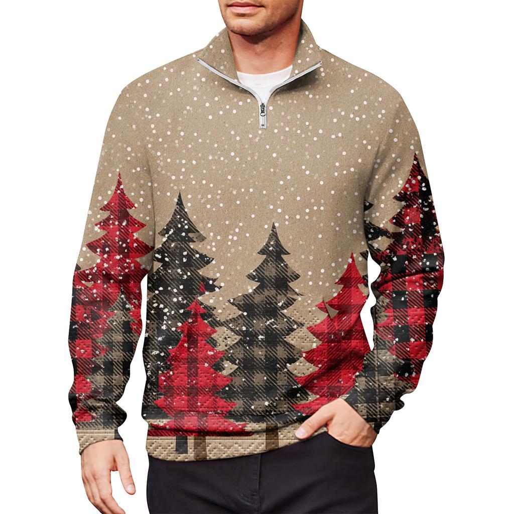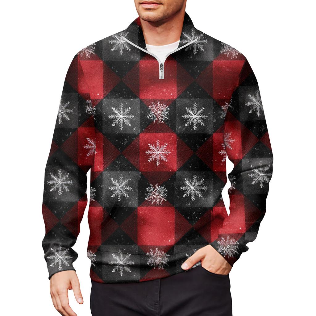 Мужской свободный повседневный свитшот на молнии 1/4, модный топ с длинным рукавом и принтом, с карманами
