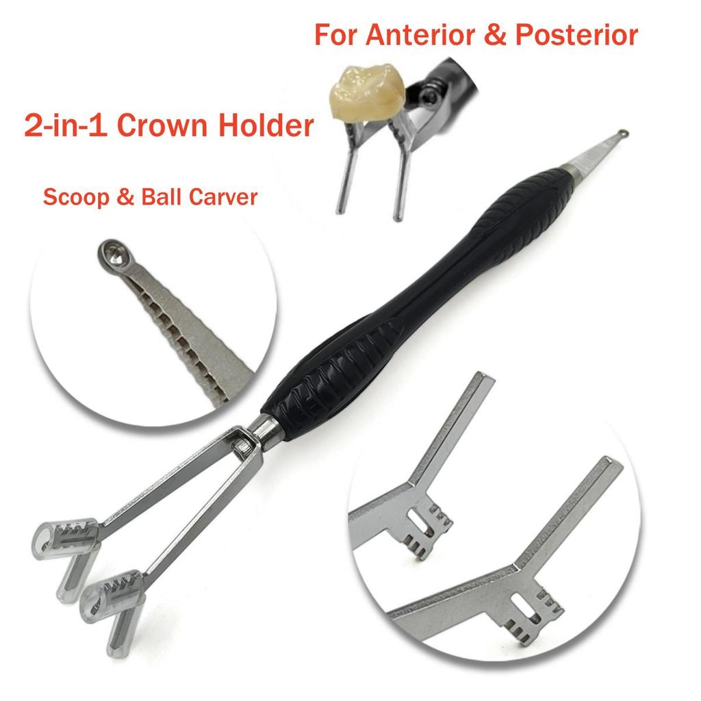 Держатель зубной коронки Задний и передний Установщик/Съемник коронкового моста Ручка из силикона С ложкой Шаровидный карвер