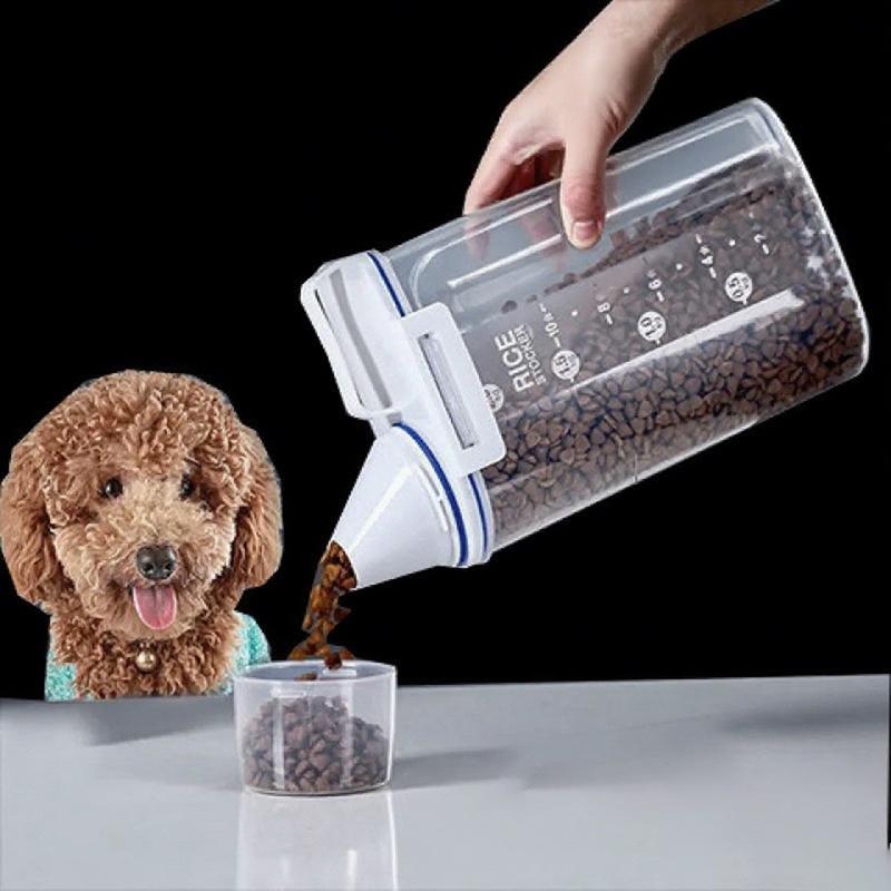 1,5 кг/2 кг Ведро для корма для собак и кошек Пластиковый резервуар для хранения с мерным стаканом Контейнер Влагонепроницаемая герметичная банка Принадлежности для домашних животных Аксессуары