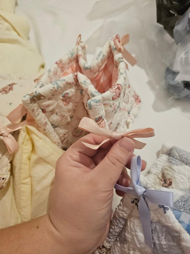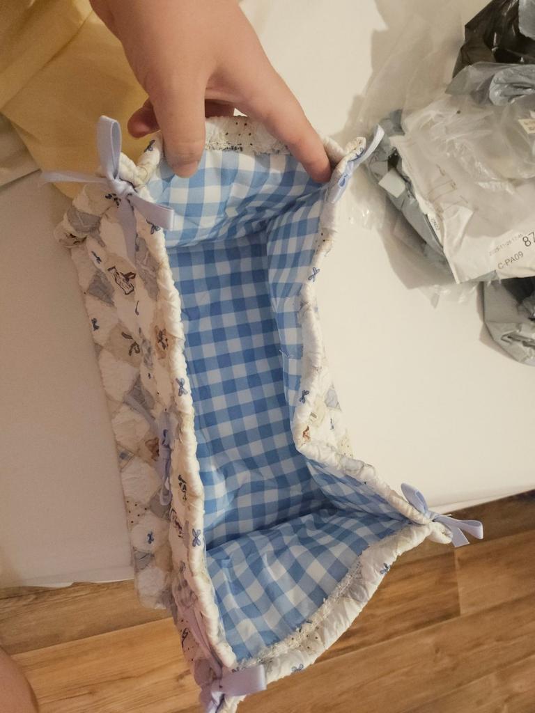отличные корзинки, сшиты хорошо, очень нравится дизайн и ткань, единственное не знаю, как их поставить так, чтобы они стояли как на фото, потому что приходят сложенные, и ткань просто прогибается, плюс оторвался один бантик, когда хотела поправить, но это не критично