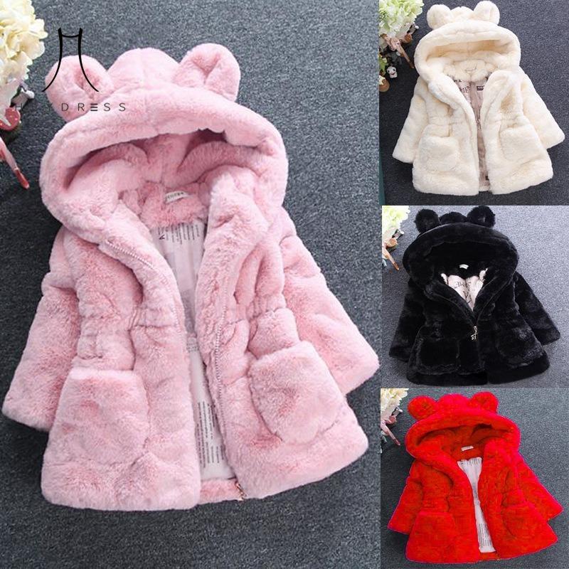 Девочки Детское Осенне-зимнее Повседневное Теплое Пальто из Искусственного Кроличьего Меха