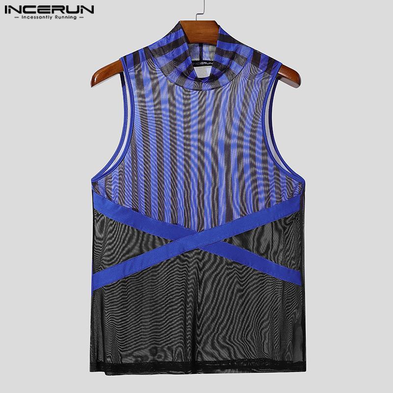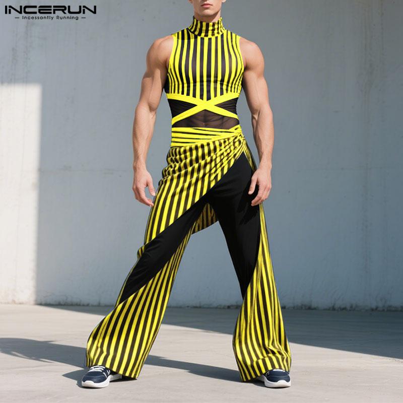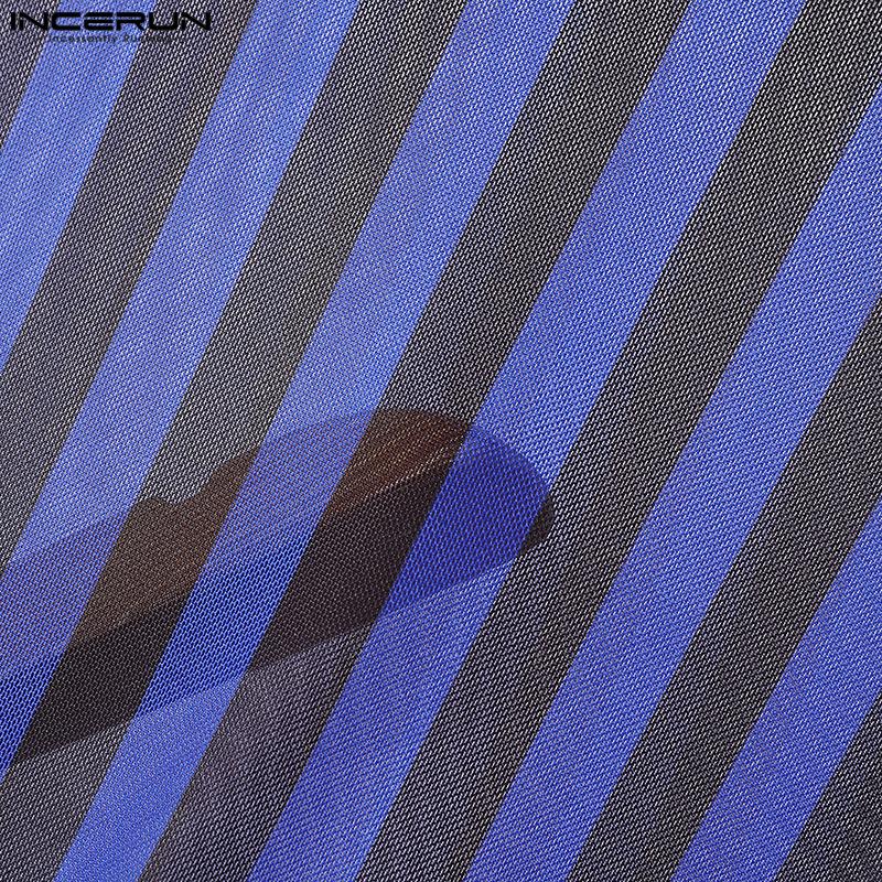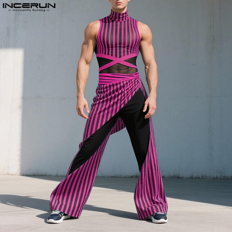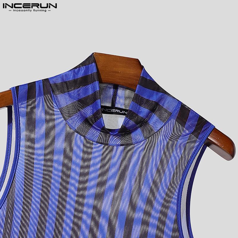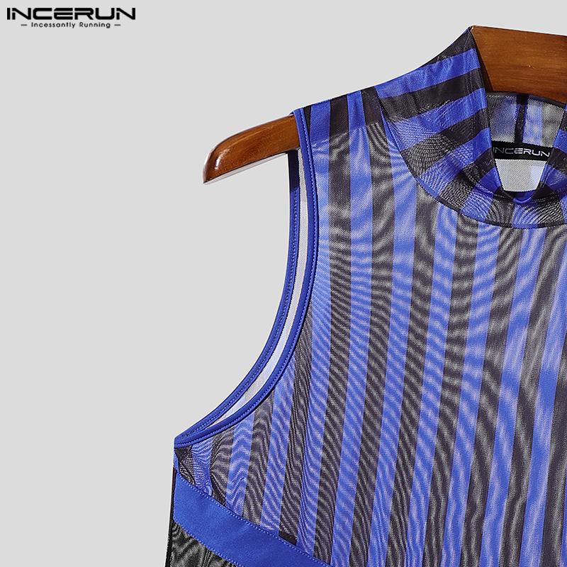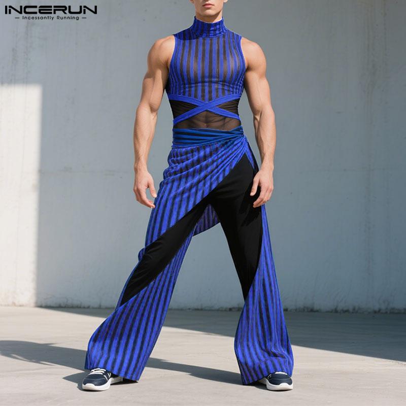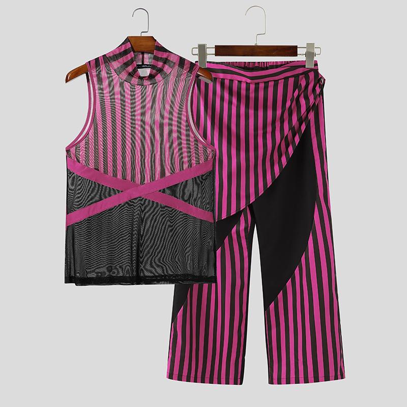 INCERUN 2 шт. Мужские майки без рукавов в полоску из прозрачной сетки, комплекты брюк с эластичной талией для многослойности