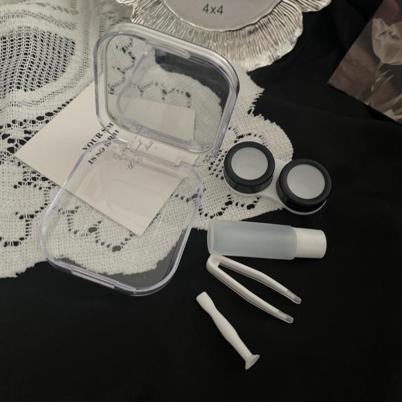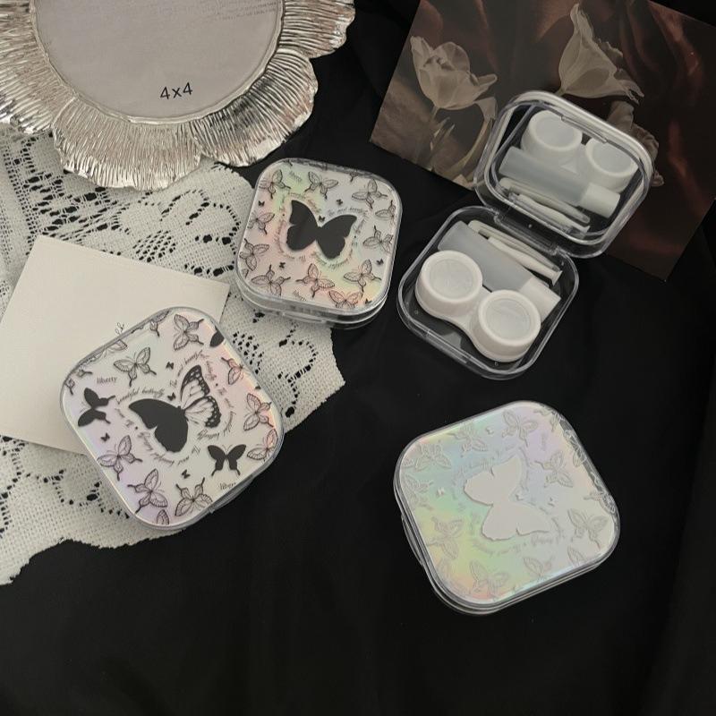 Лазерный узор «Бабочка», контейнер для линз квадратной формы, женский чехол для контактных линз, коробка для хранения цветных контактных линз, портативный дорожный набор