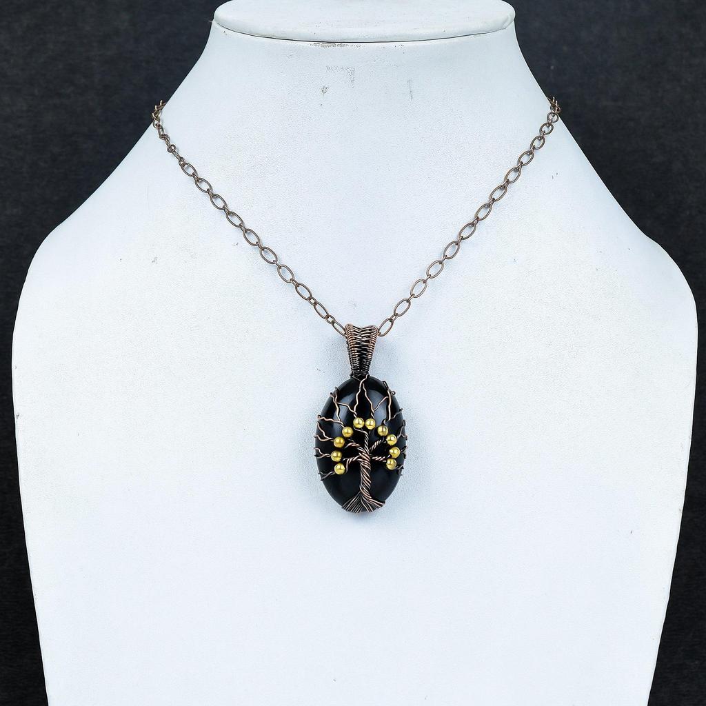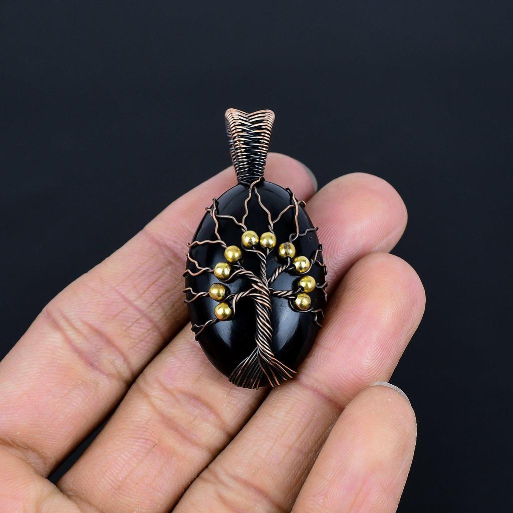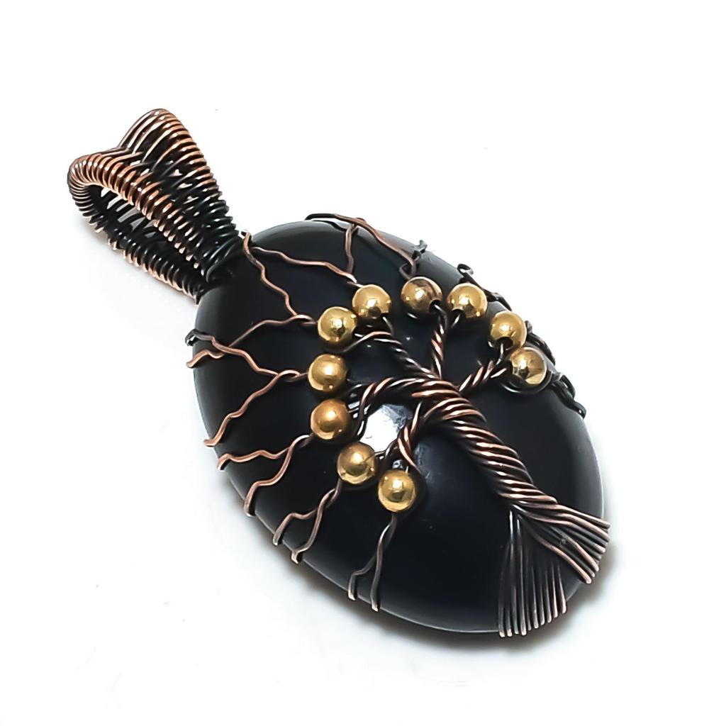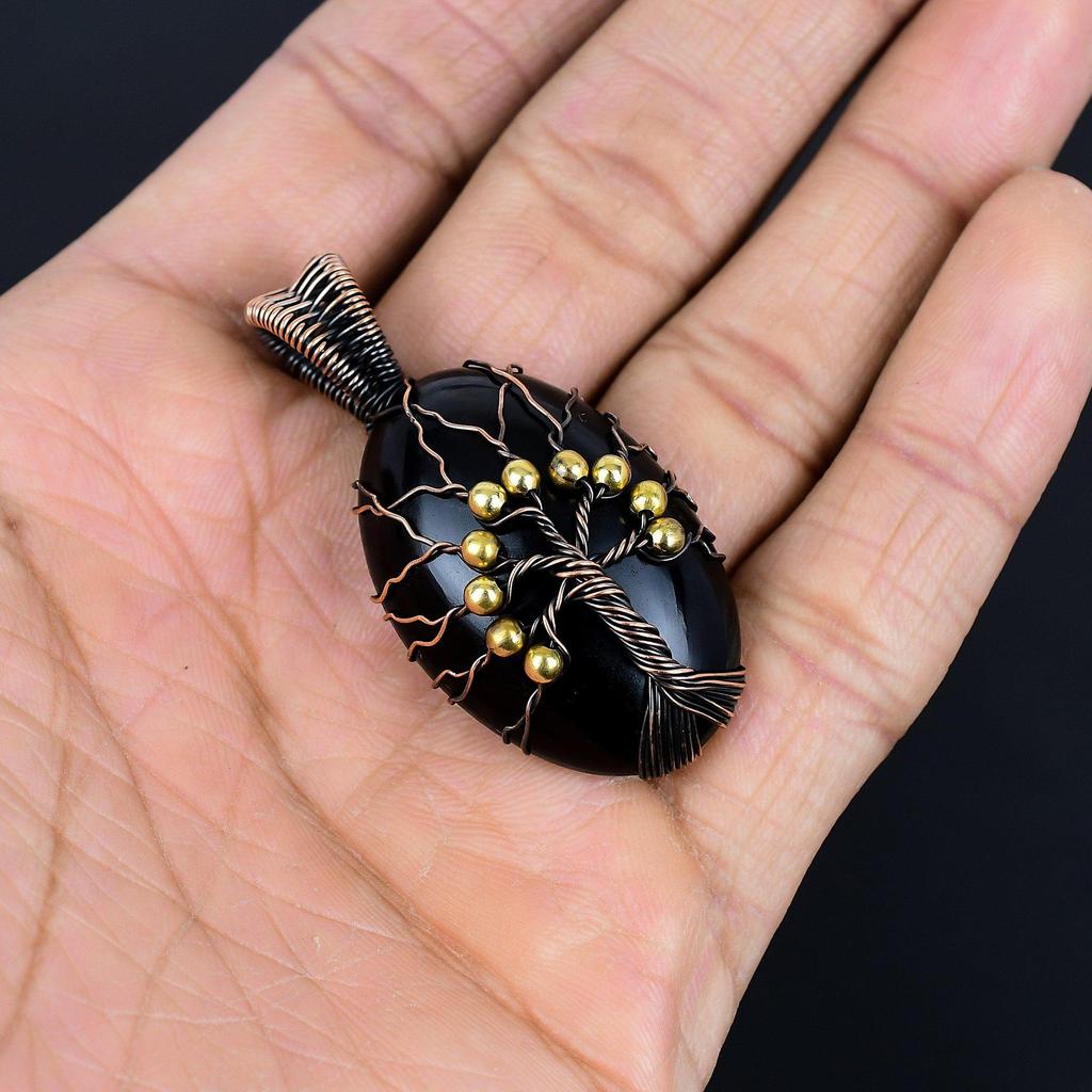 Tree Of Life Black Eye Obsidian Pendant Handmade Gemstone Jewelry, 999 Copper Wire Wrapped Pendant Design Jewelry Pendant