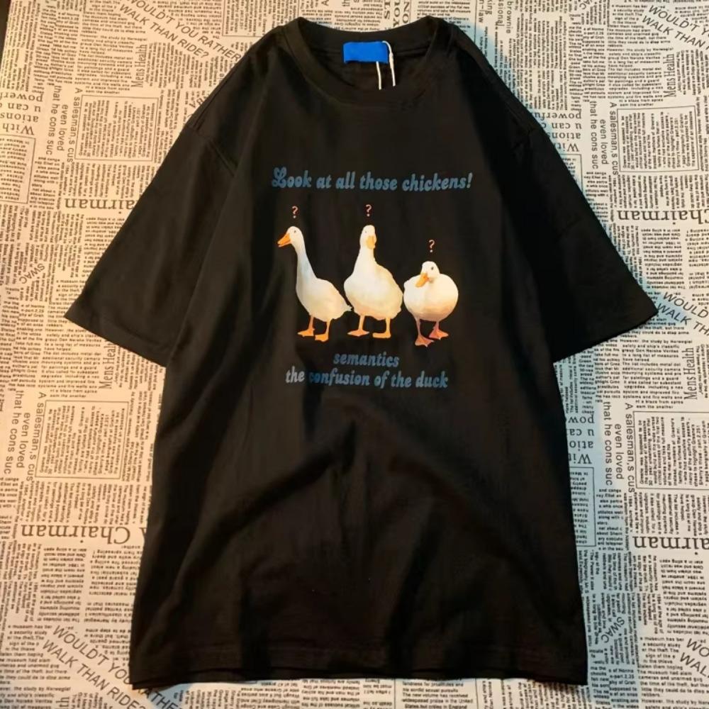 Футболка с короткими рукавами из хлопка с принтом Catching Three Ducks American Retro Fun для мужчин и женщин, свободный топ большого размера для пар, летние футболки