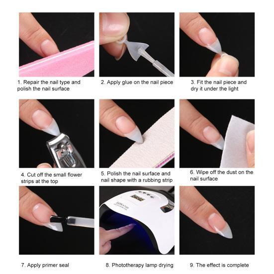 Поставляется с различным дизайном формы и гладкой поверхностью, которую вы можете приклеить в правильном положении, и вы можете печатать изображения, которые вы хотите на ногтях для украшения в соответствии с его символами DIY, который плотно прилипает к вашим ногтям и увеличению длины ногтя.