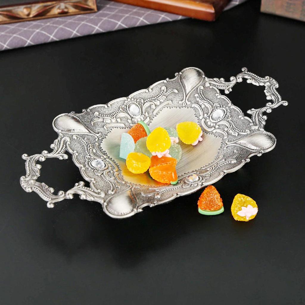 - Декоративный металлический поднос: Винтажный декоративный поднос для фруктов, многофункциональный металлический сервировочный поднос, идеально подходит в качестве центрального элемента обеденного стола, подноса для демонстрации на журнальном столике, подноса для демонстрации ювелирных аксессуаров, сервировочного подноса для макияжа, сервировочного подноса для закусок или декоративного акцента для приставных столиков и кухонных столешниц, также отличный фотореквизит