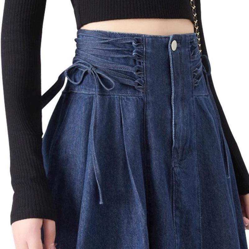 Весенне-осенняя женская модная джинсовая юбка больших размеров с высокой талией, повседневная юбка миди А-силуэта