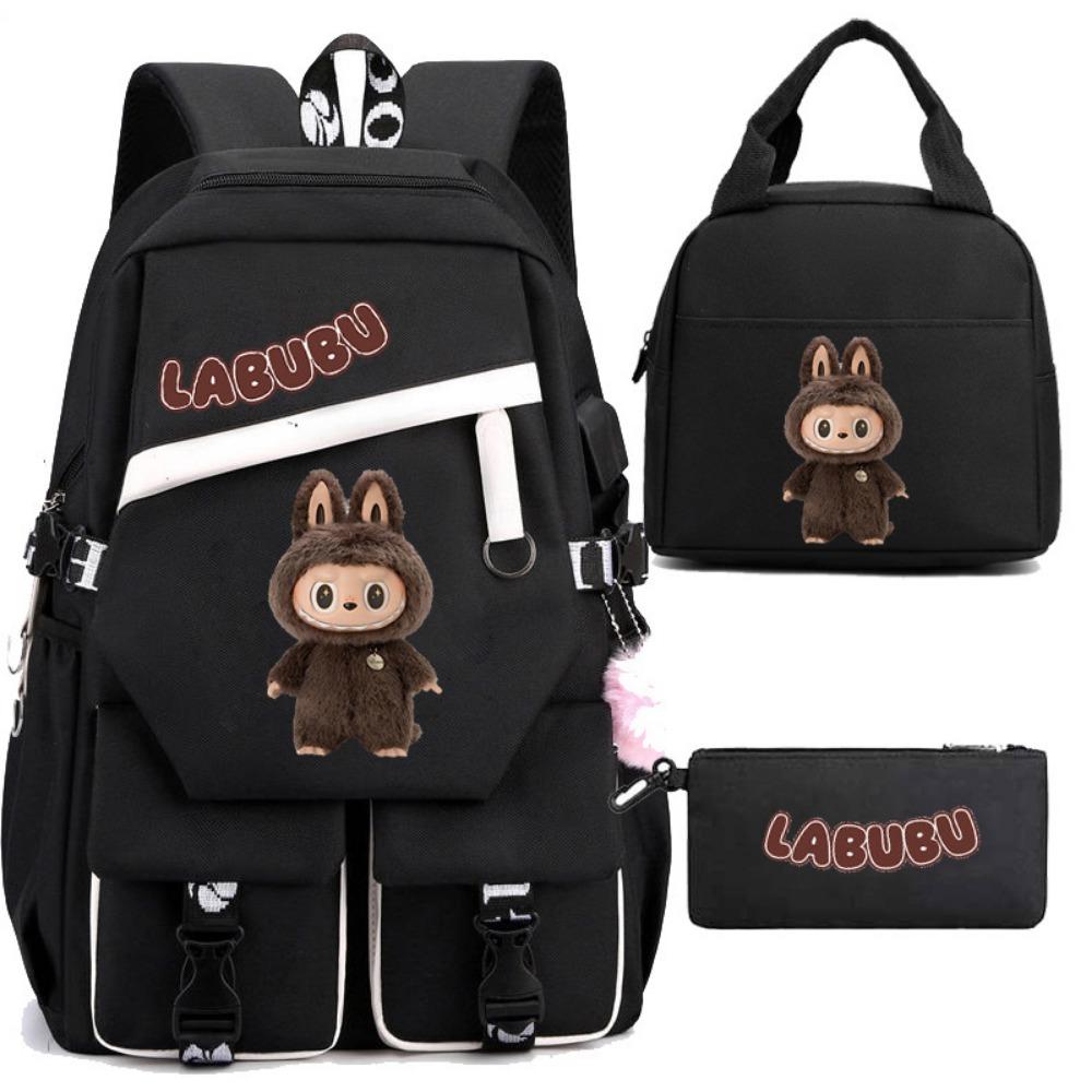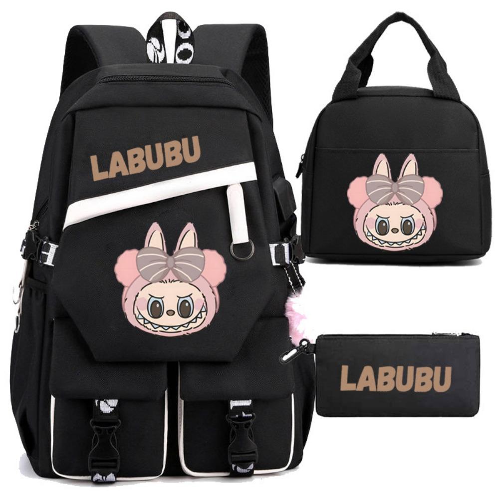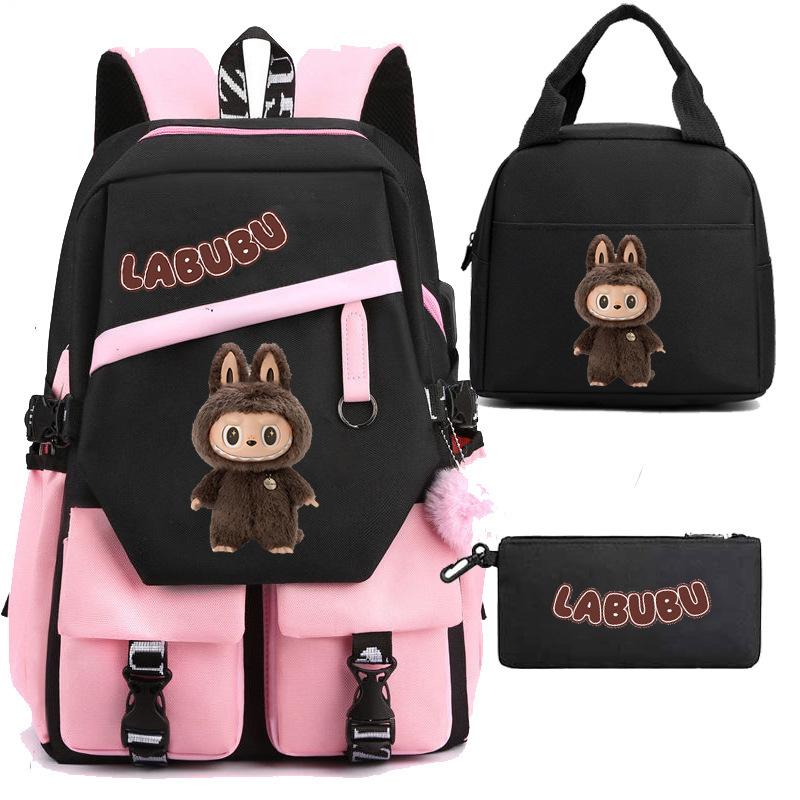 Новый детский школьный рюкзак Labub, сумка для ланча, пенал, набор из трех предметов