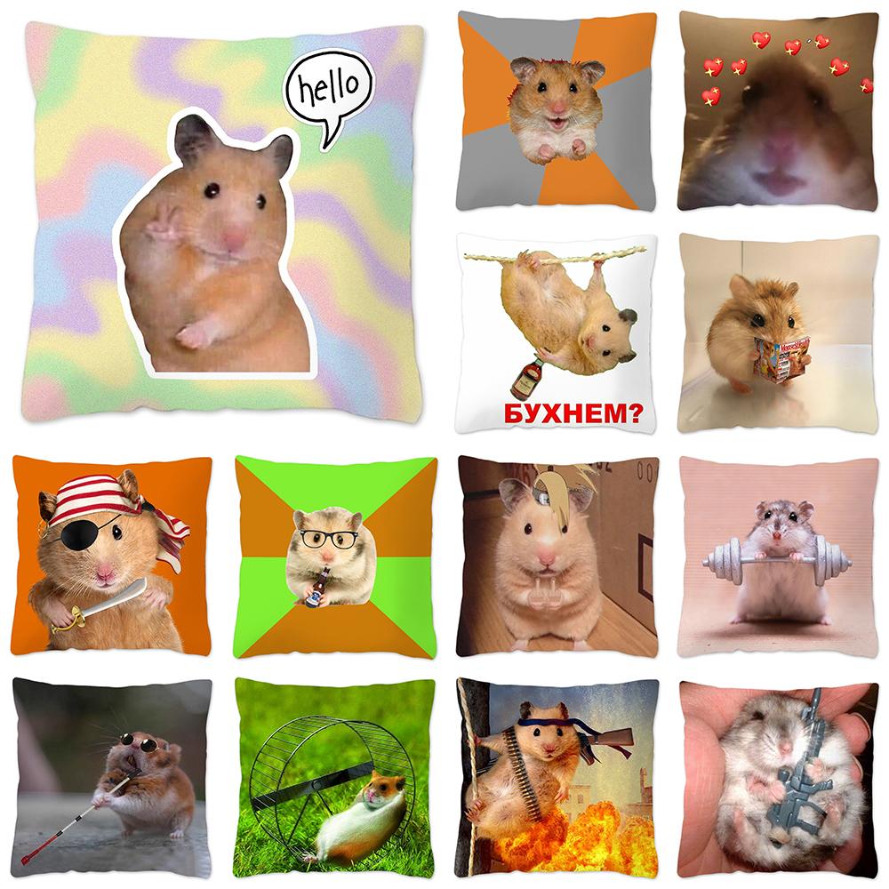 Забавный чехол для подушки с изображением хомяка, домашний декор, чехол для подушки из полиэстера для дивана, автомобиля, милая наволочка, Cojines Decorativos Para Sofá — купить товар онлайн с бесплатной доставкой по всему миру!