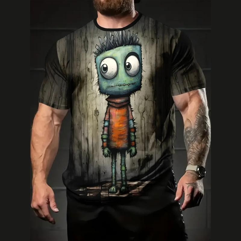 Летняя футболка с круглым вырезом, забавным мультяшным принтом 3D, модная, повседневная, с короткими рукавами, мужская
