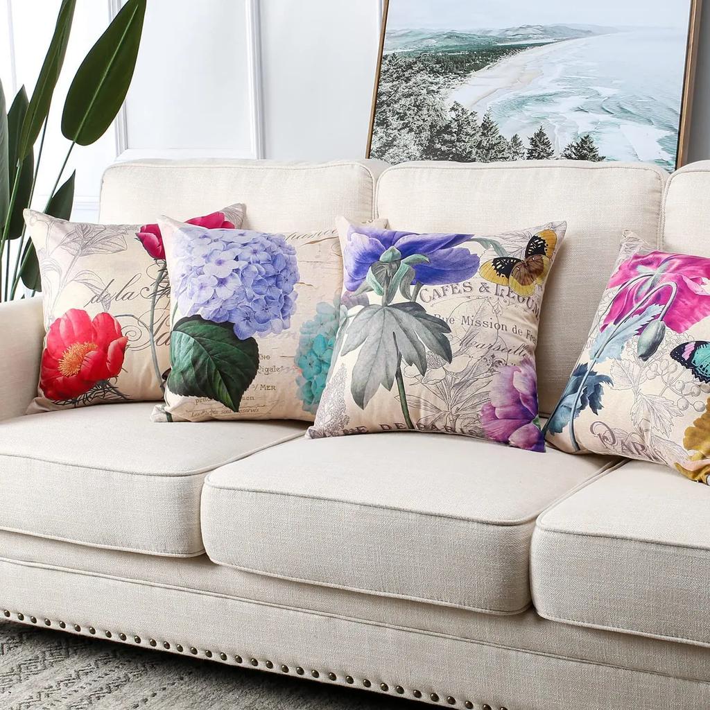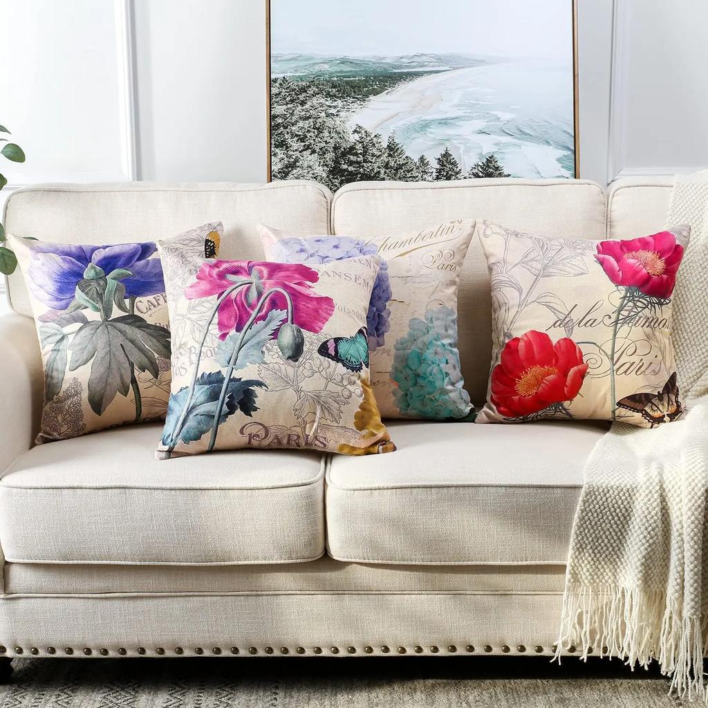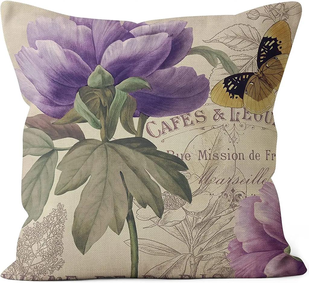 Винтажный фиолетовый цветочный льняной чехол для подушки для автомобиля, гостиной, дивана, спальни, домашнего декора, 40x40 45x45 50x50 60x60 наволочка