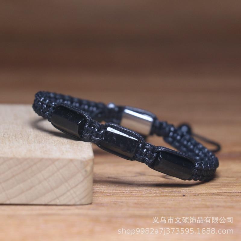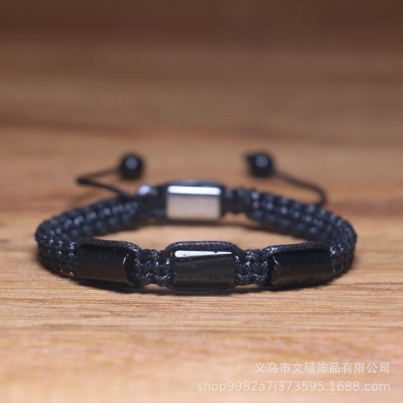 Квадратный регулируемый браслет из черного агата ручной работы, плетеный, с натуральным лунным камнем, тигровым глазом, аметистом