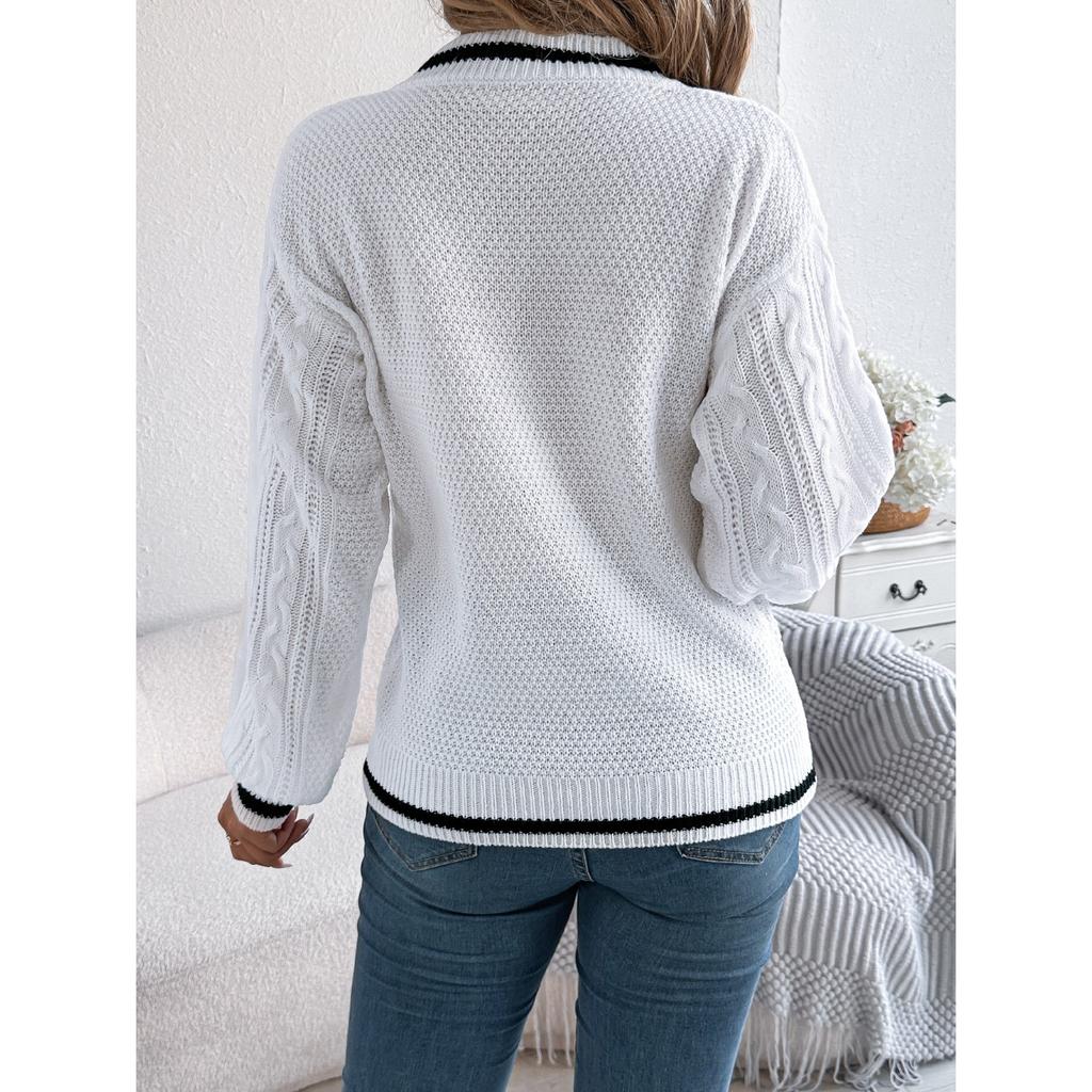 QICED Осенне-зимний школьный стиль, многоцветный свитер с V-образным вырезом и переплетением, с длинными рукавами-фонариками, женская одежда