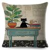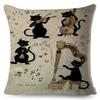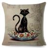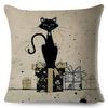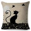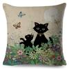 Милый Элегантный Чехол для Подушки с Черным Котом, Двусторонняя Печать, Декор, Мультяшный Животный Наволочка для Дивана, Дома, Автомобиля, Льняная Наволочка для Подушки