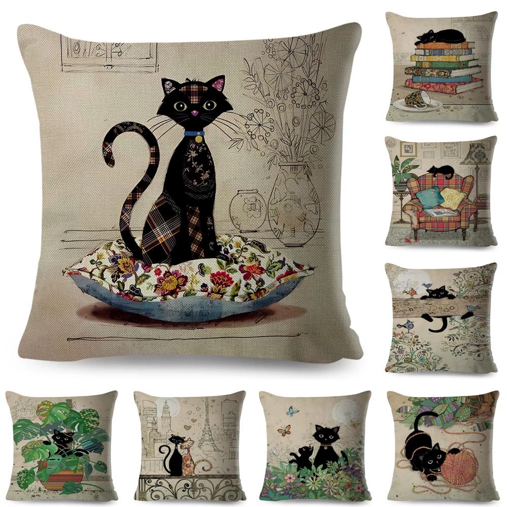 Милый Элегантный Чехол для Подушки с Черным Котом, Двусторонняя Печать, Декор, Мультяшный Животный Наволочка для Дивана, Дома, Автомобиля, Льняная Наволочка для Подушки — купить товар онлайн с бесплатной доставкой по всему миру!