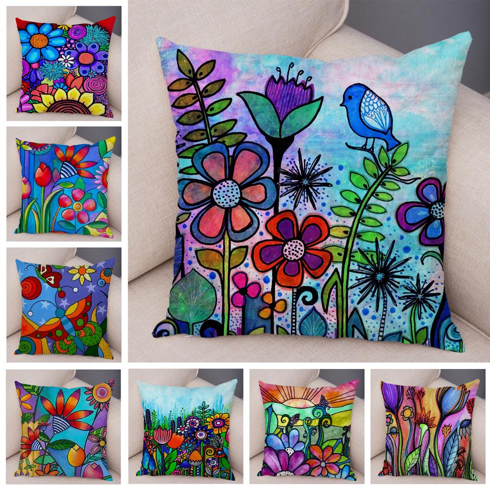 Детская живопись маслом Искусство Наволочка для подушки Обе стороны Плюшевая наволочка Декор Мультяшное растение Наволочка для дивана Дома Машины