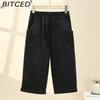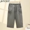 BITCED Летние женские брюки прямого кроя с эластичной талией, для женщин среднего и пожилого возраста, с высокой посадкой, из стираного хлопка, укороченные брюки больших размеров