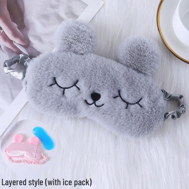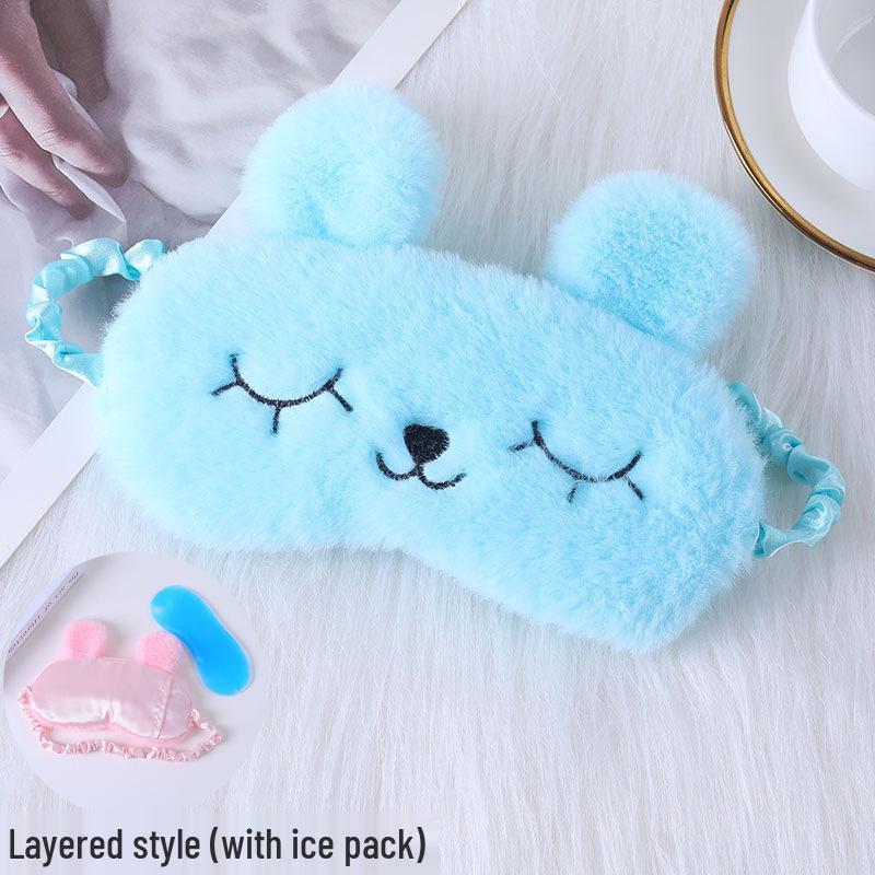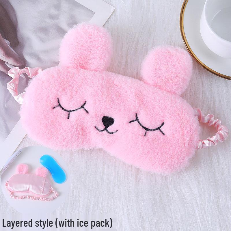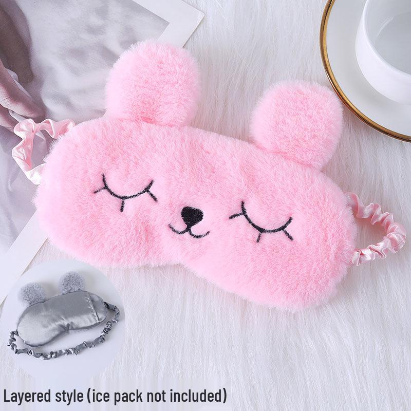 Милая мультяшная плюшевая шелковая маска для глаз с кроличьими ушками и пакетом для горячего и холодного использования - Удобная маска для сна в наличии