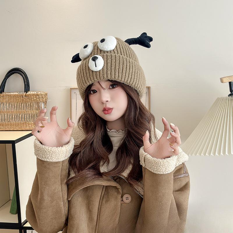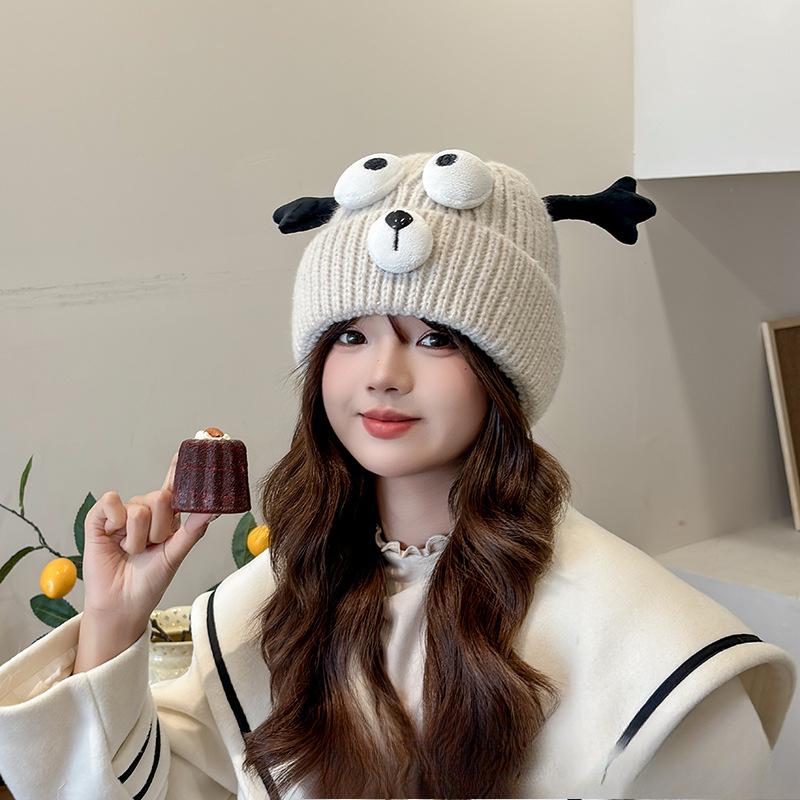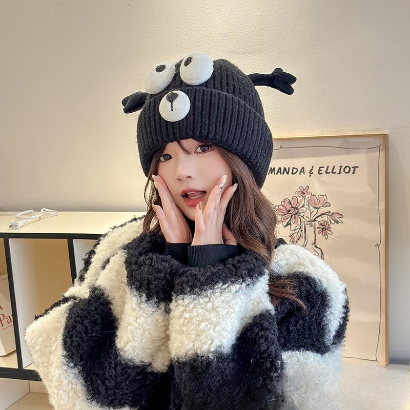 Милая шапка для женщин на осень и зиму, плюшевая новая корейская вязаная шапка, универсальная теплая защита ушей, утолщенная модная шерстяная шапка