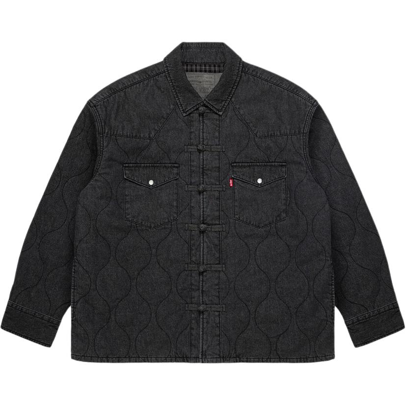 Коллаборация Levis X CLOT FW24 Дизайн с китайской пуговицей Накладной карман Повседневная куртка Куртка унисекс Черный A5354-0001 — купить товар онлайн с бесплатной доставкой по всему миру!