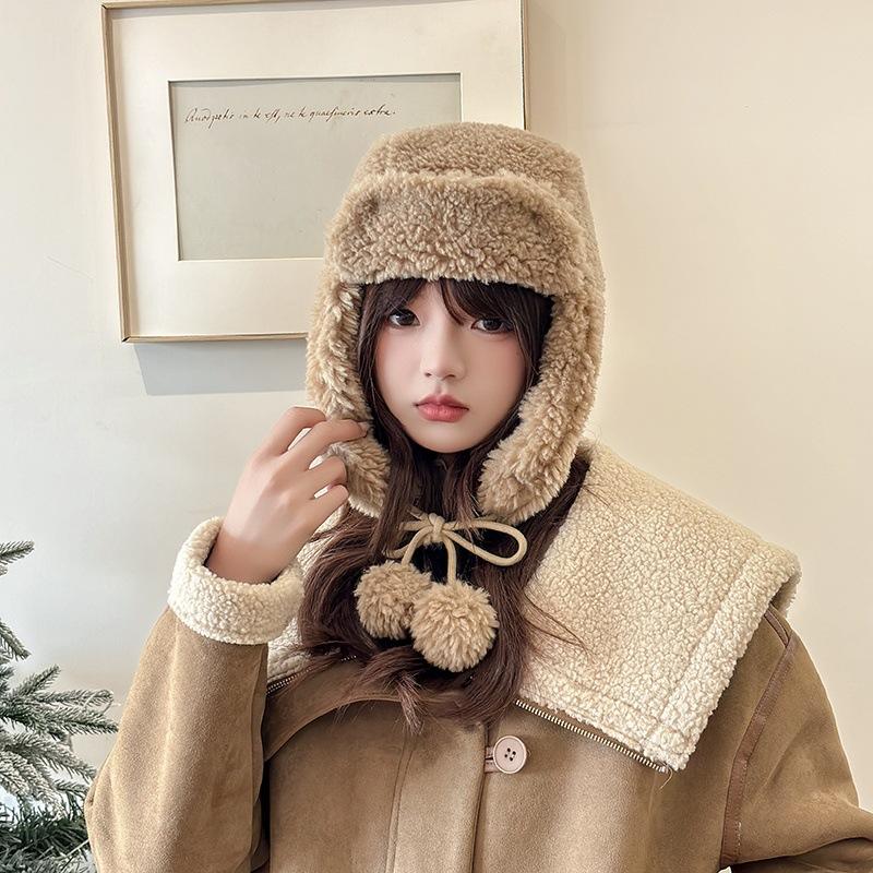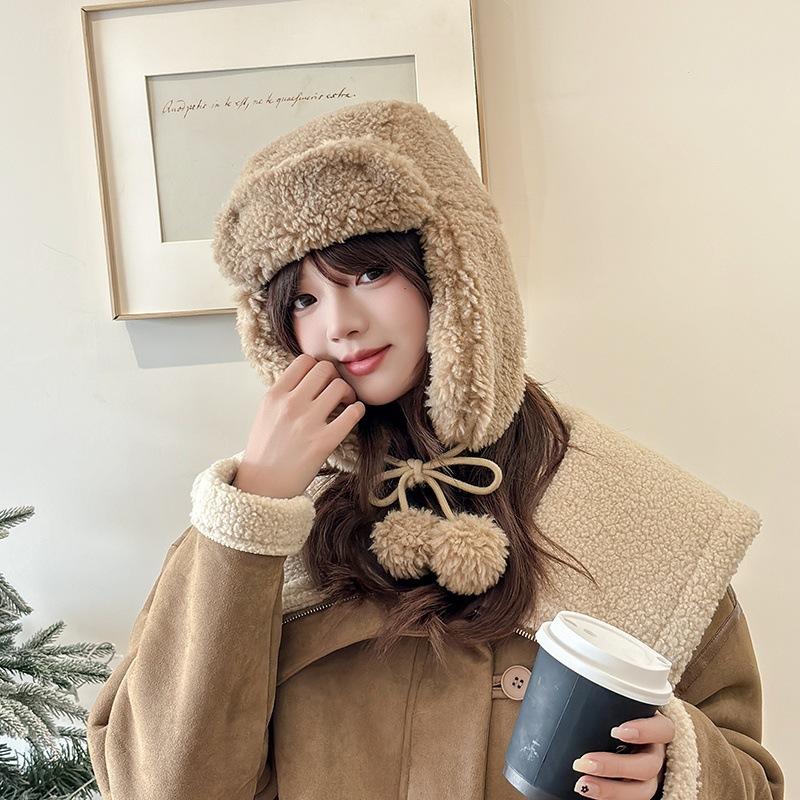 Осенне-зимние шапки для женщин Новые плюшевые в корейском стиле Вязаные шерстяные Универсальное тепло и утолщенная мода Плюшевая бархатная шапка-лисичка
