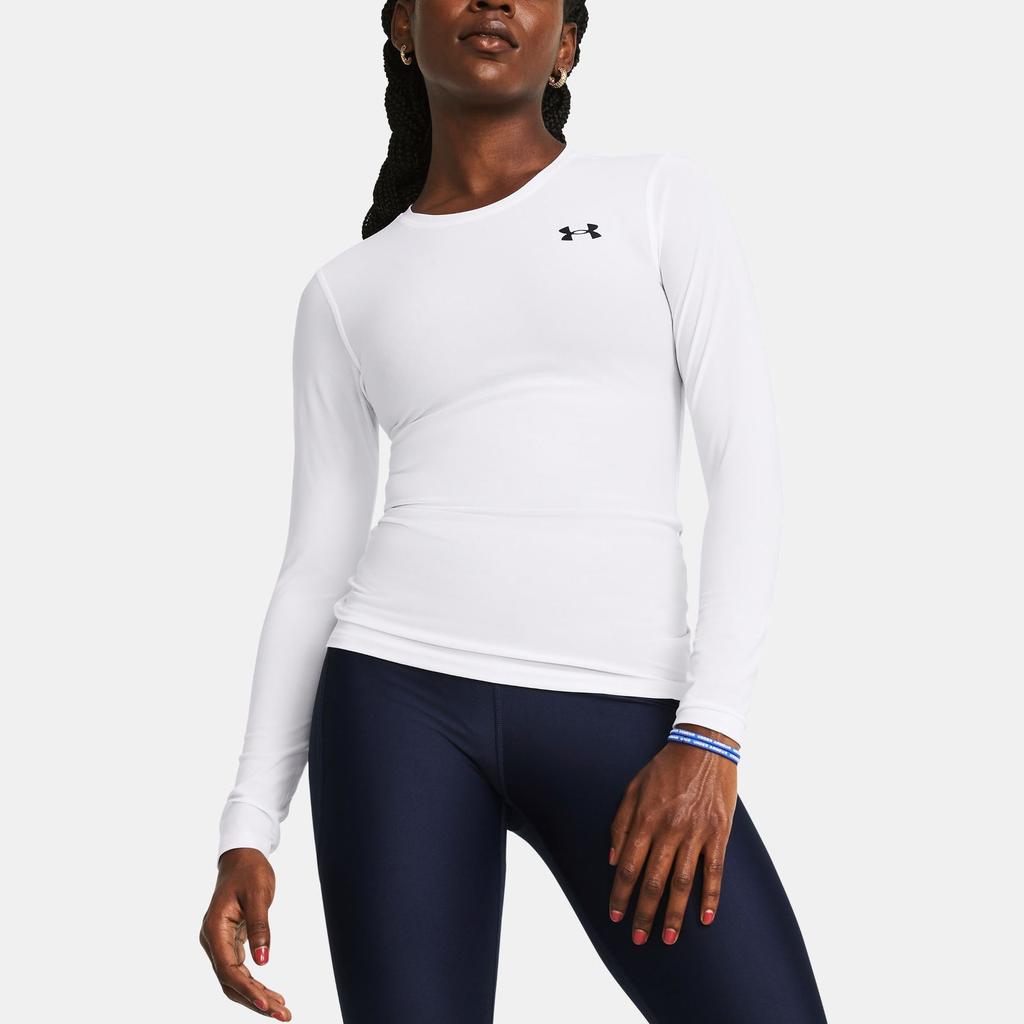 Under Armour HeatGear® OG Логотип Принт Круглый вырез Облегающий крой Длинный рукав Топ для тренировок Женские топы Белый 1387697-100