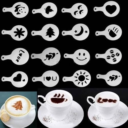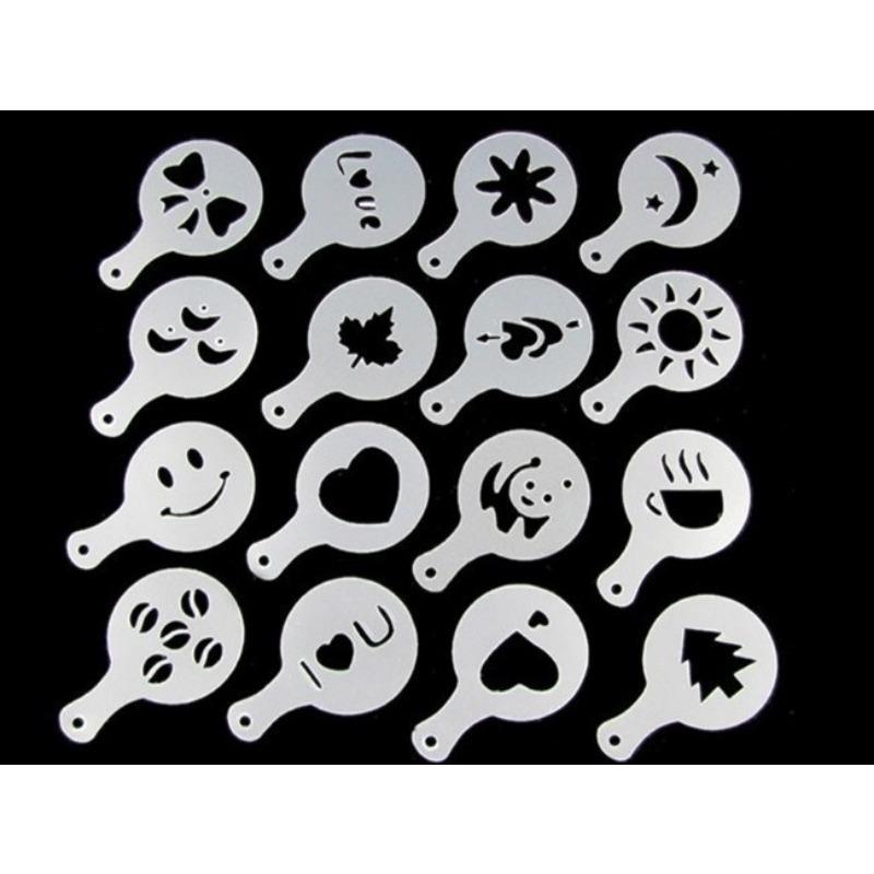 Горячий 16 шт./набор Модный Креативный Капучино Кофе Бариста Трафареты Шаблон Посыпать Пад Дастер Инструменты для Распыления Распродажа