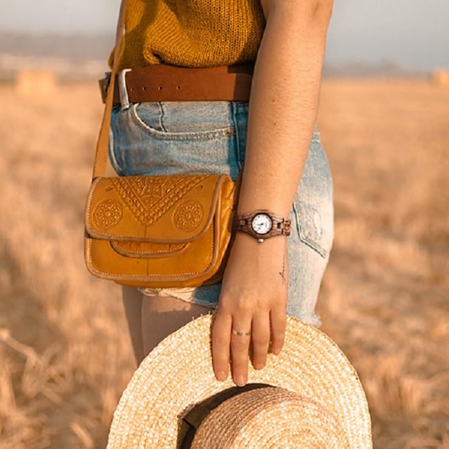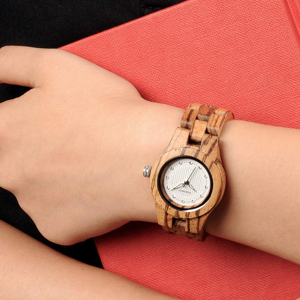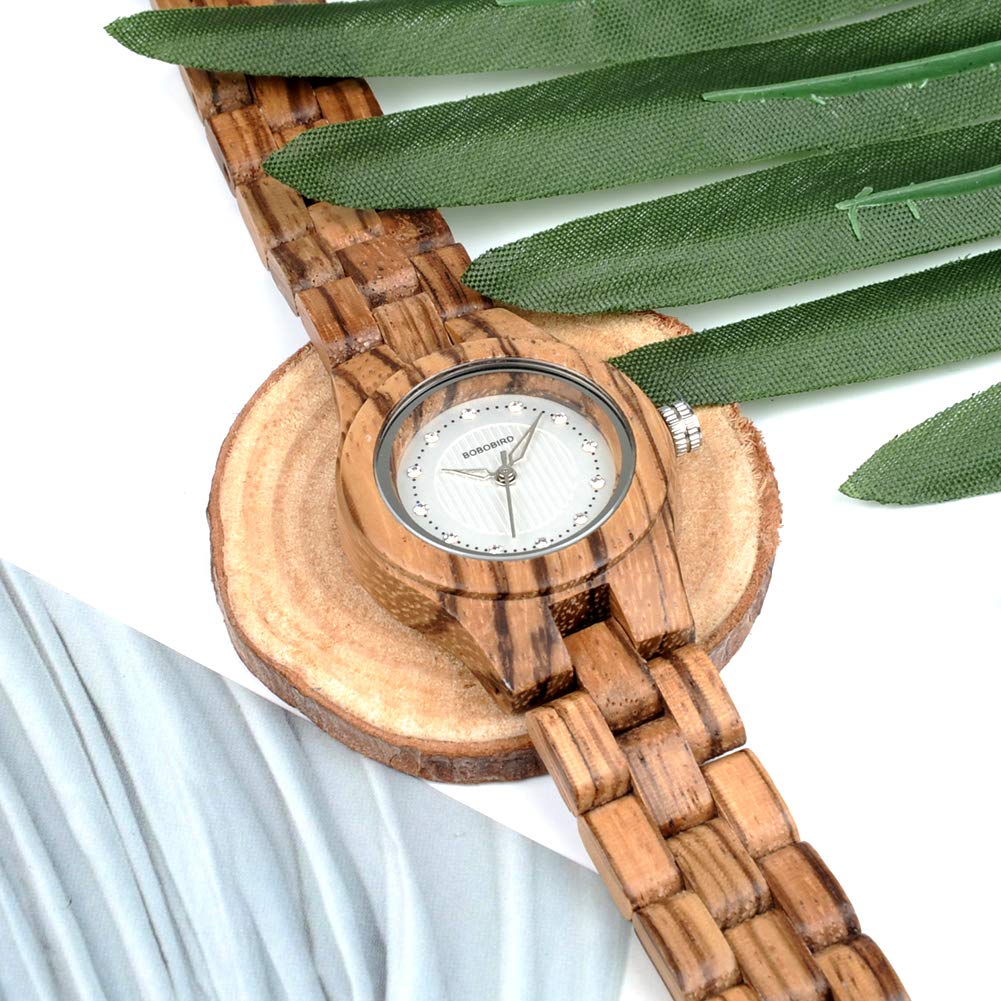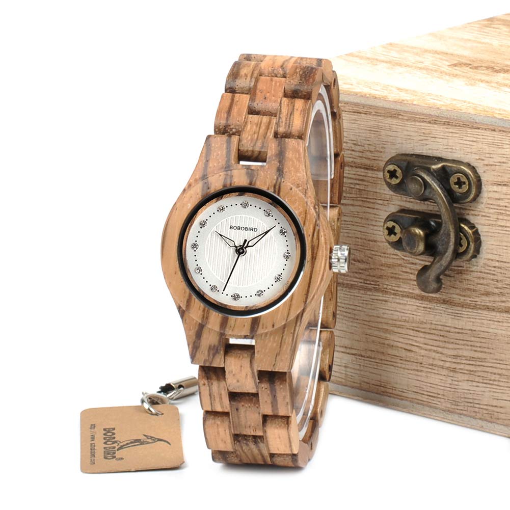 Часы из бамбукового дерева BOBO BIRD с имитацией кварца, деревянные часы с подарочной коробкой, женские с бриллиантами, мужской механизм, (коричневый)