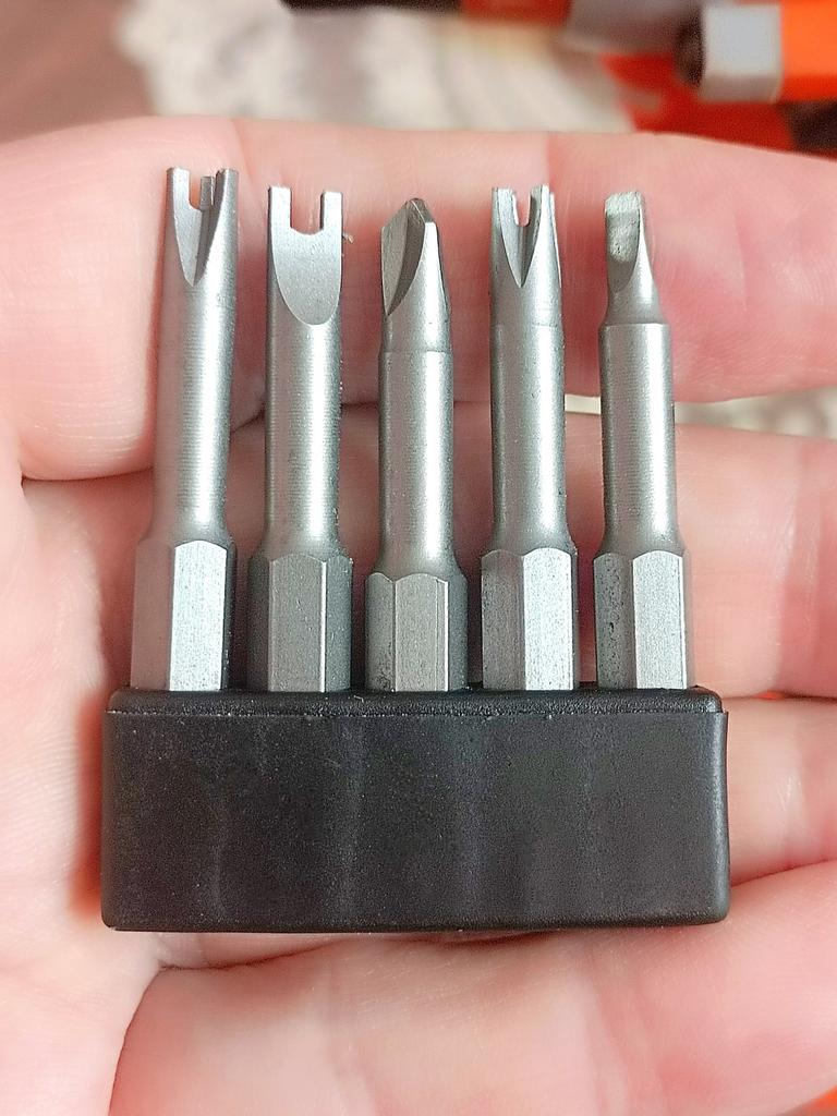 ❤️👍Купила набор нестандартных бит для шуруповёрта В комплекте 5 нестандартных бит, которые редко встречаются в обычных наборах. Сразу хочу отметить качество: металл прочный, биты хорошо держатся в патроне шуруповёрта, не слизываются и не деформируются при работе. Раньше сталкивалась с креплениями нестандартной формы, которые невозможно было открутить обычными насадками. С этими битами такие задачи решаются легко и без лишних усилий. Очень удобно, что теперь не нужно искать специальные насадки по отдельности. Набор идеально подходит для ремонта техники и других бытовых задач. В целом я очень довольна покупкой: набор качественный, практичный и универсальный. Однозначно рекомендую тем, кто ищет надежные биты для разных типов шурупов и нестандартных креплений.