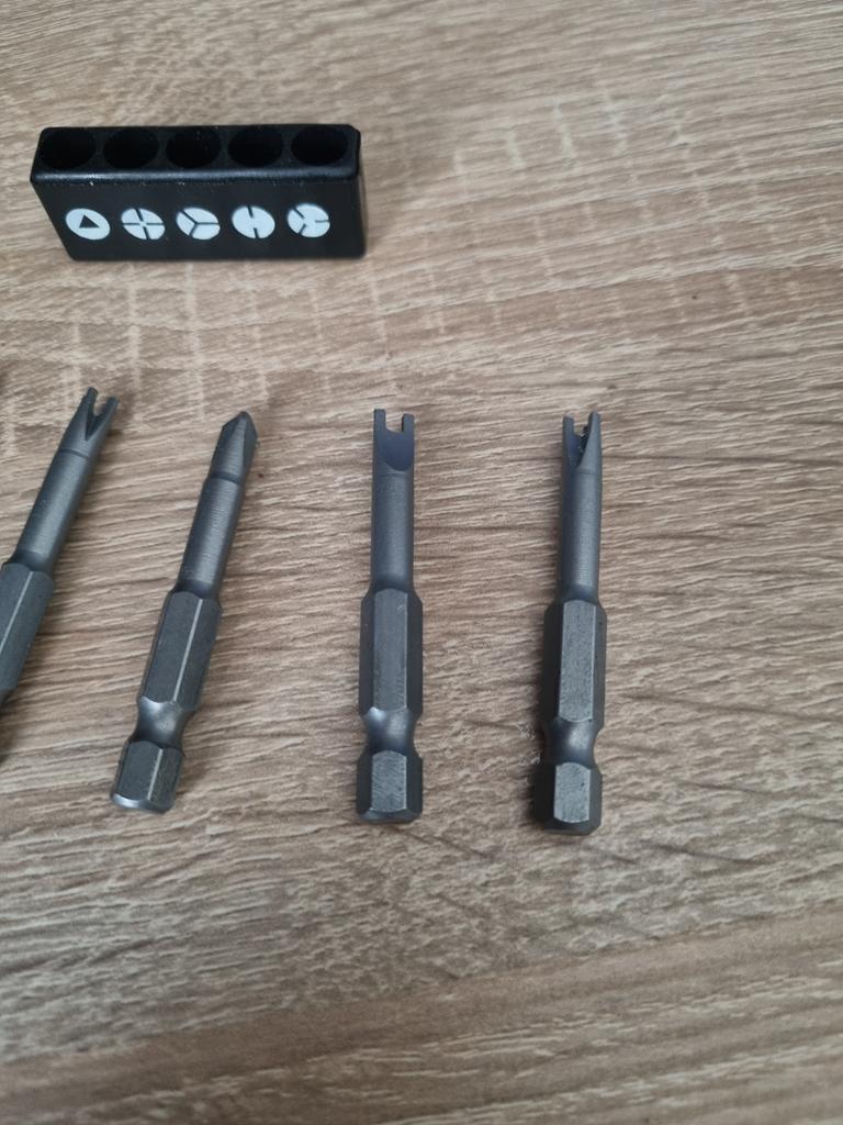 Как скажет мой муж: инструментов много не бывает 😁 Доставка составила около двух недель. При транспортировке ничего не повредилось и битки пришли без брака. Материал - металл. В комплекте 5 разных битки. Приходят в специальном контейнере, где удобно хранить и сразу видно какая именно нужна. Все сделано аккуратно и качественно. Такие подойдут под все инструменты - шуруповерт, электрическая отвертка и т.п. Супруг остался доволен новым приобретением. Сказал - практичны и удобны в использовании.
