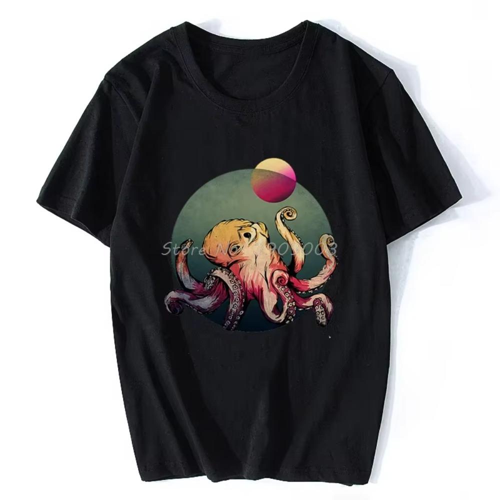 Глубоководный осьминог Смешная винтажная футболка Повседневная футболка Большие топы унисекс Мужская одежда Футболка для фитнеса