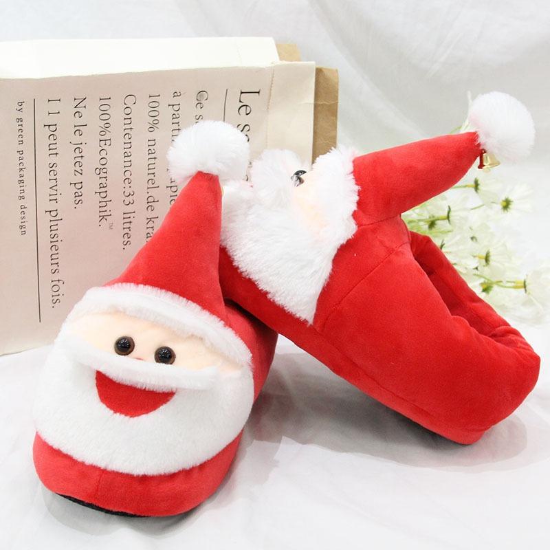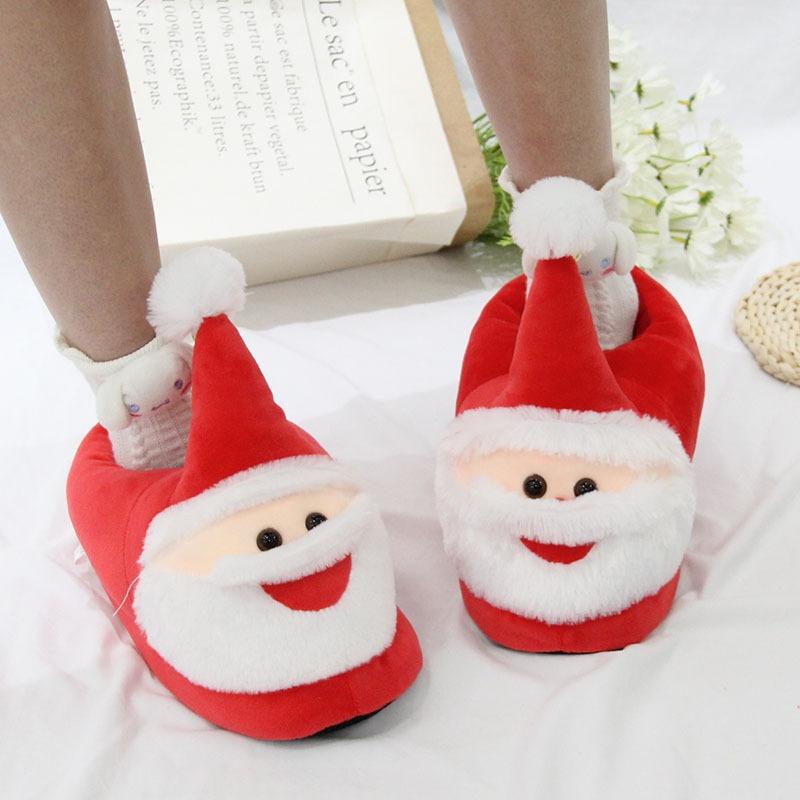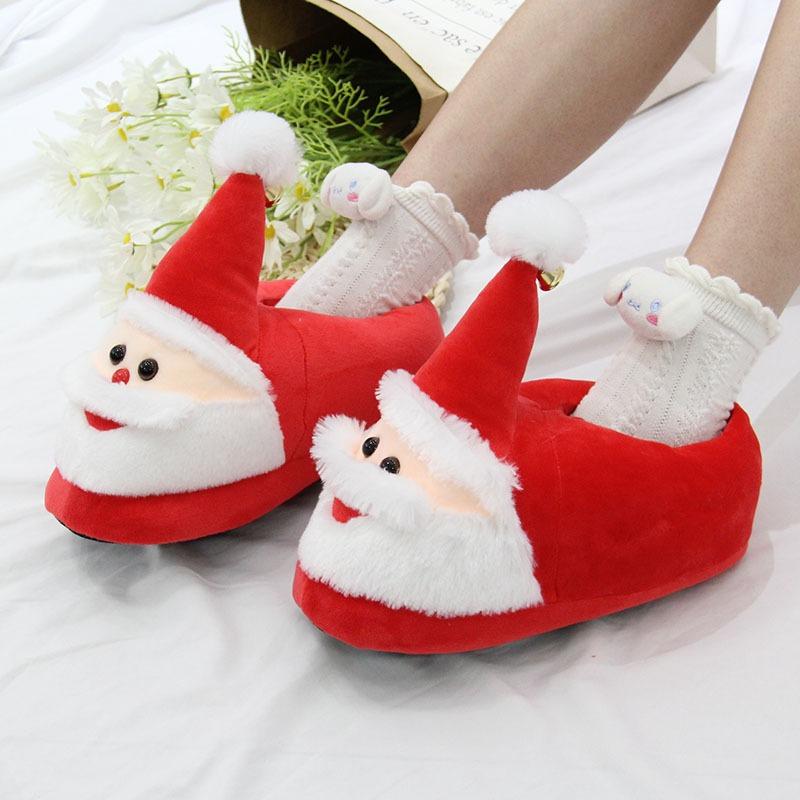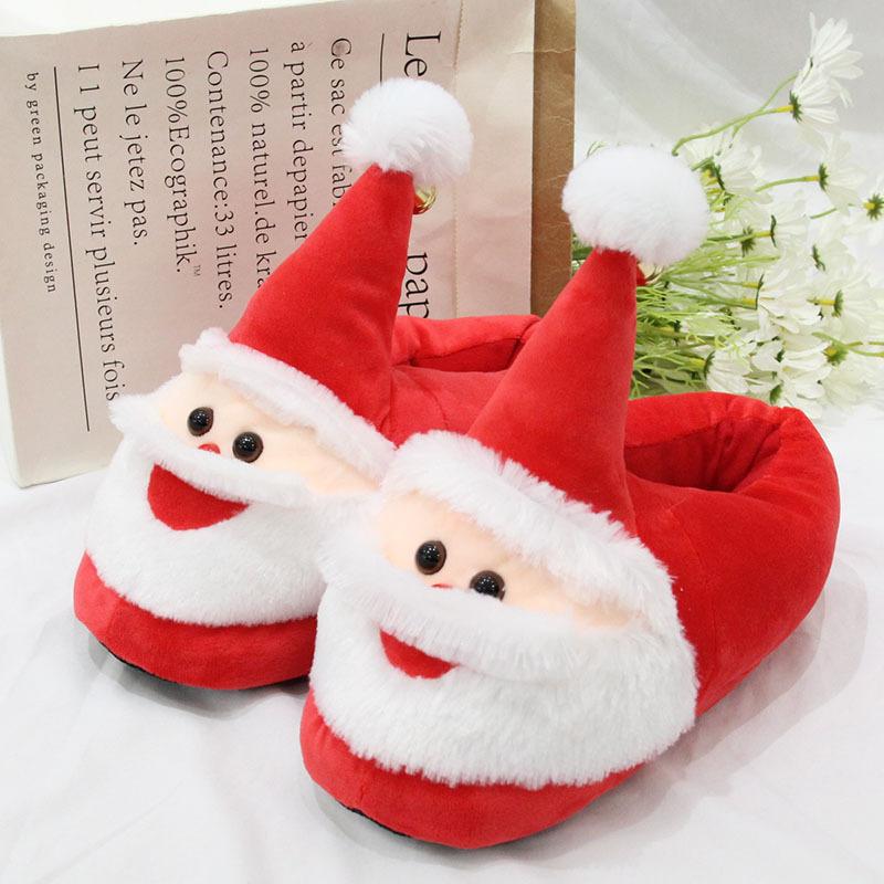 Мультяшные плюшевые тапочки Санта-Клауса для дома, праздничные хлопковые туфли, танкетка, теплая обувь, домашняя обувь, рождественские подарки для женщин