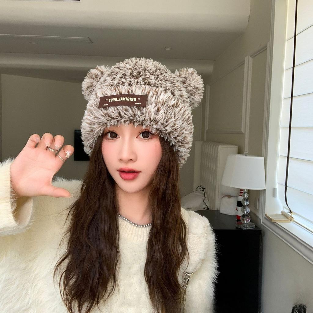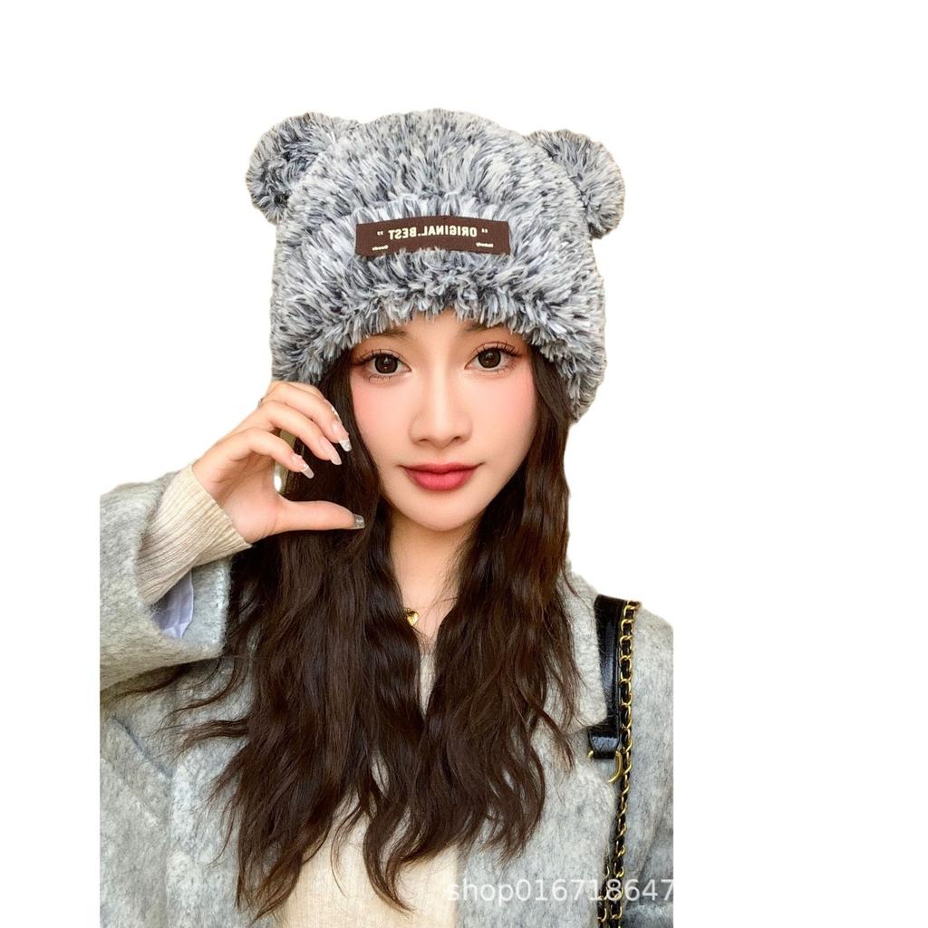 Корейская версия женской милой новой осенне-зимней шапки с плюшевыми ушками в виде медведя, вязаная шапка, модная шерстяная шапка, теплая шапка для защиты ушей
