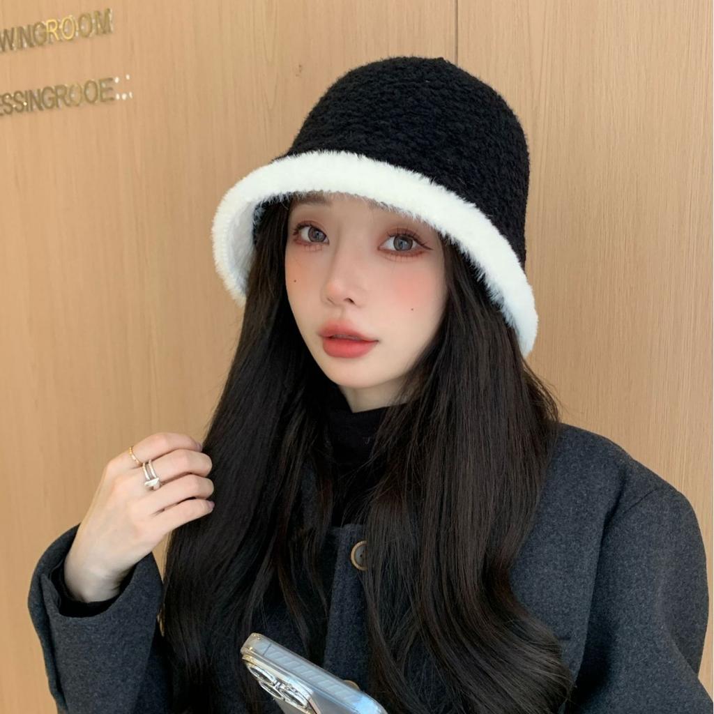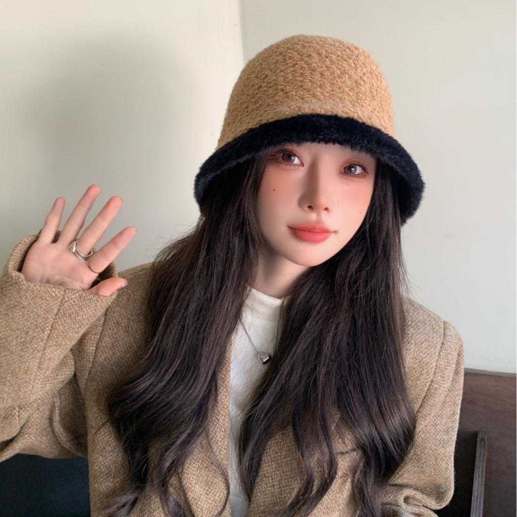 Новая осенне-зимняя новая женская шляпа-рыбачка, универсальная теплая шляпа-ведро, вязаная повседневная шляпа в корейском стиле, плюшевая модная утолщенная