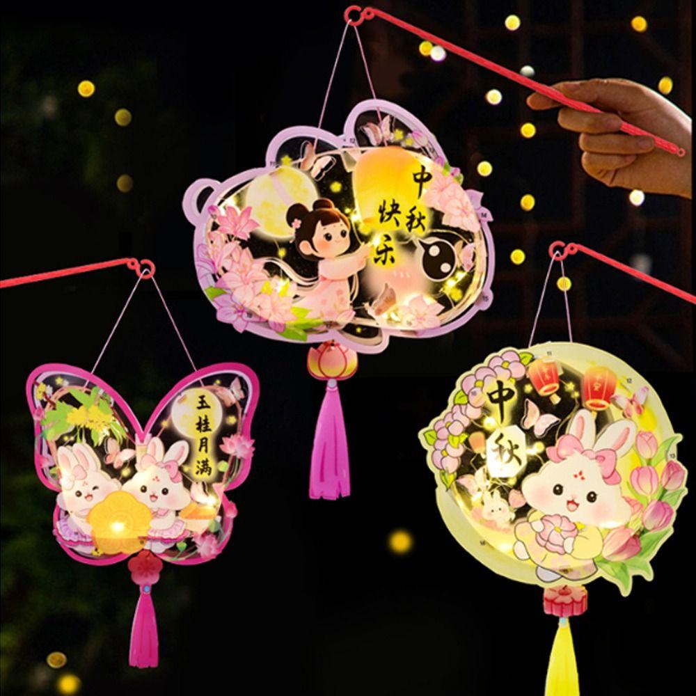 Portable Chinese Rabbit Lantern Traditional LED Lantern Toys Handheld Paper Lantern New Year