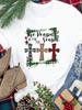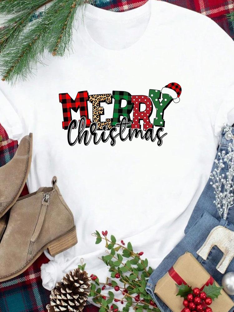 (Азиатский размер) Футболка Новогодний праздник милый стиль письма Счастливого Рождества Топ фестиваль Повседневная Женская Принт Леди Короткий рукав Модные Графические футболки