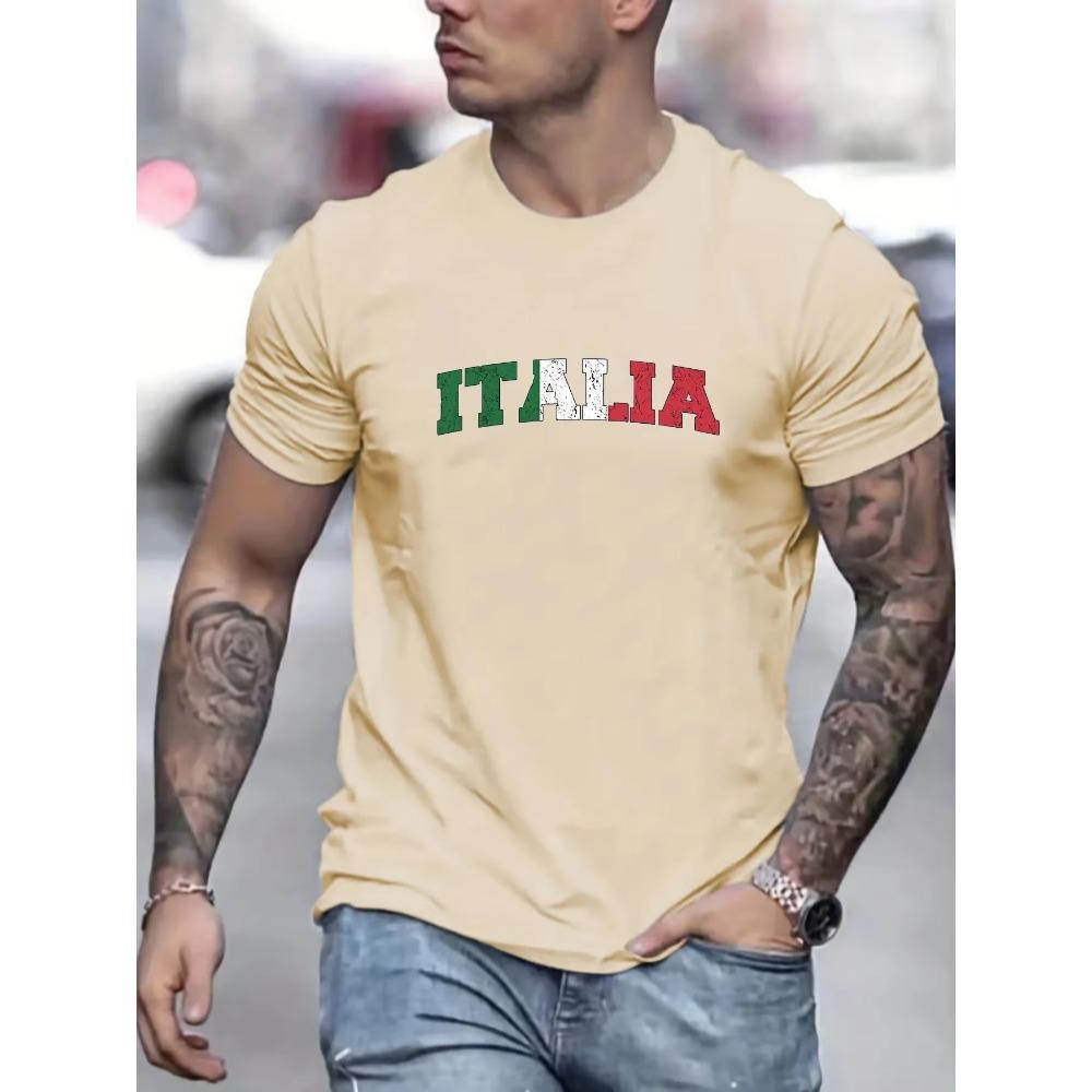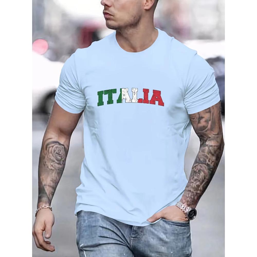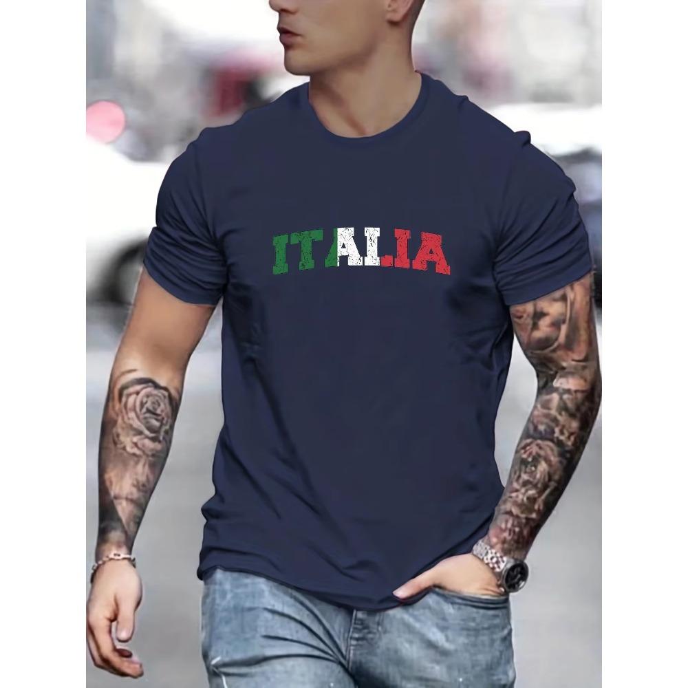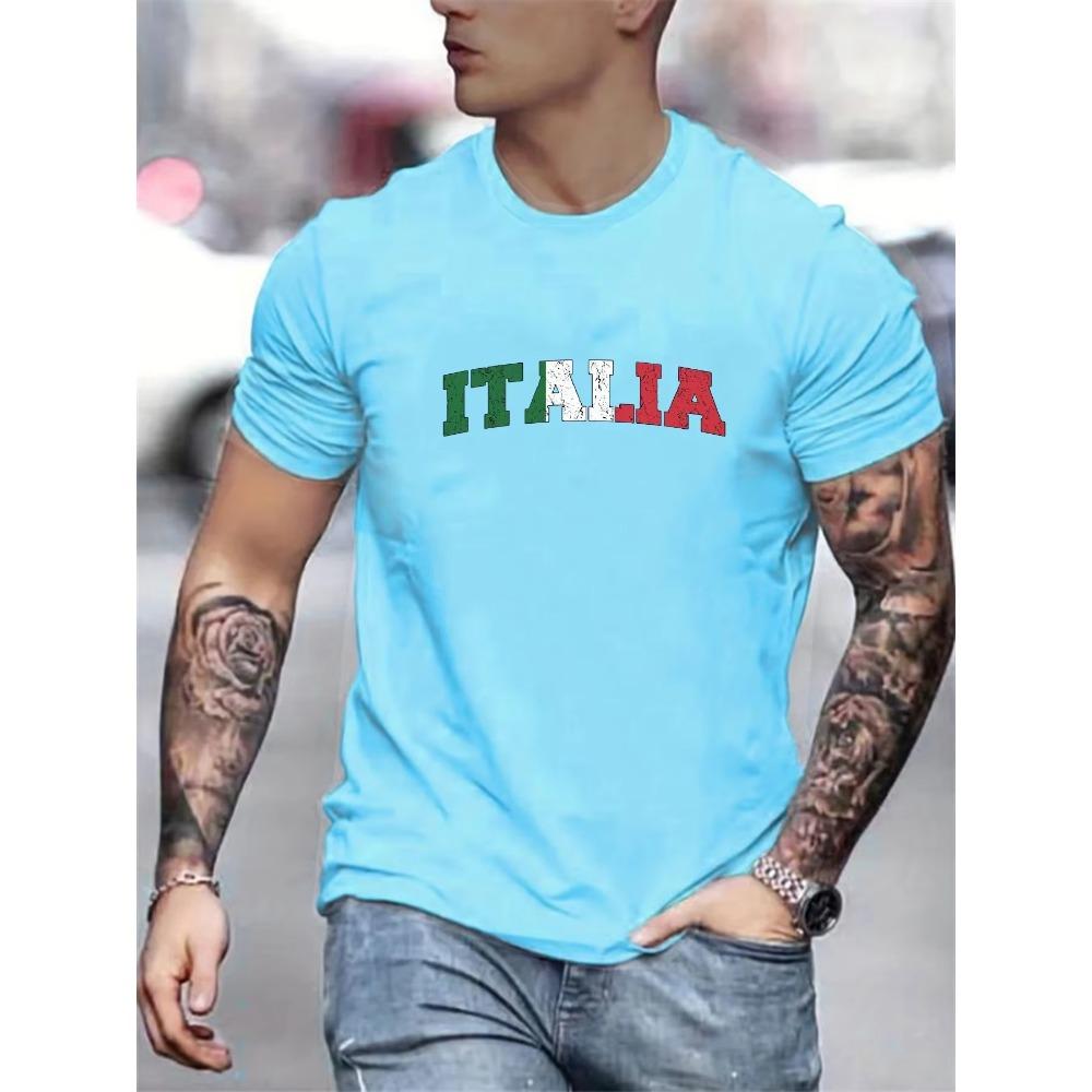 Мужская летняя Италия Удобная Дышащая Повседневная Модная Принтованная Свободная Большая Повседневная Футболка с Коротким Рукавом и Круглым Вырезом