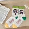 Осенние женские носки, носки до середины икры, махровые носки с мультяшным котом, студенческие носки для женщин