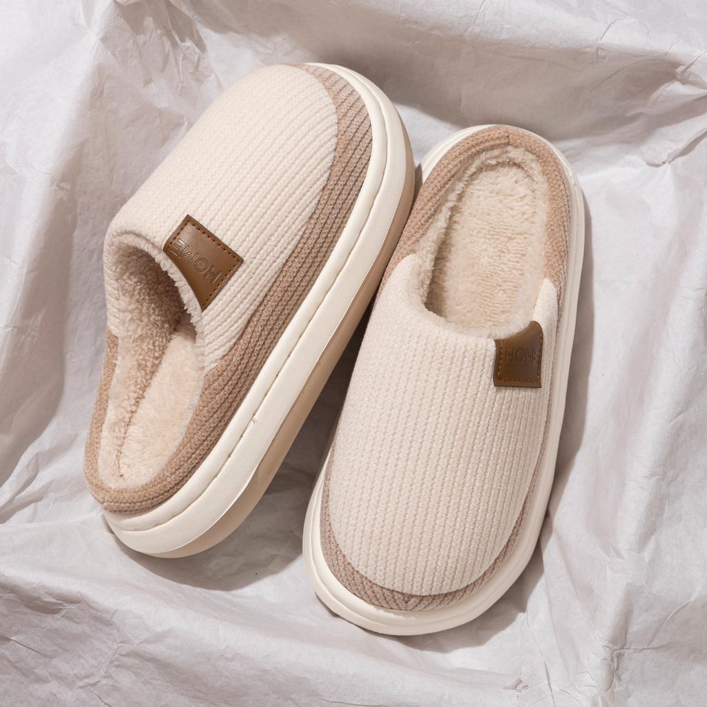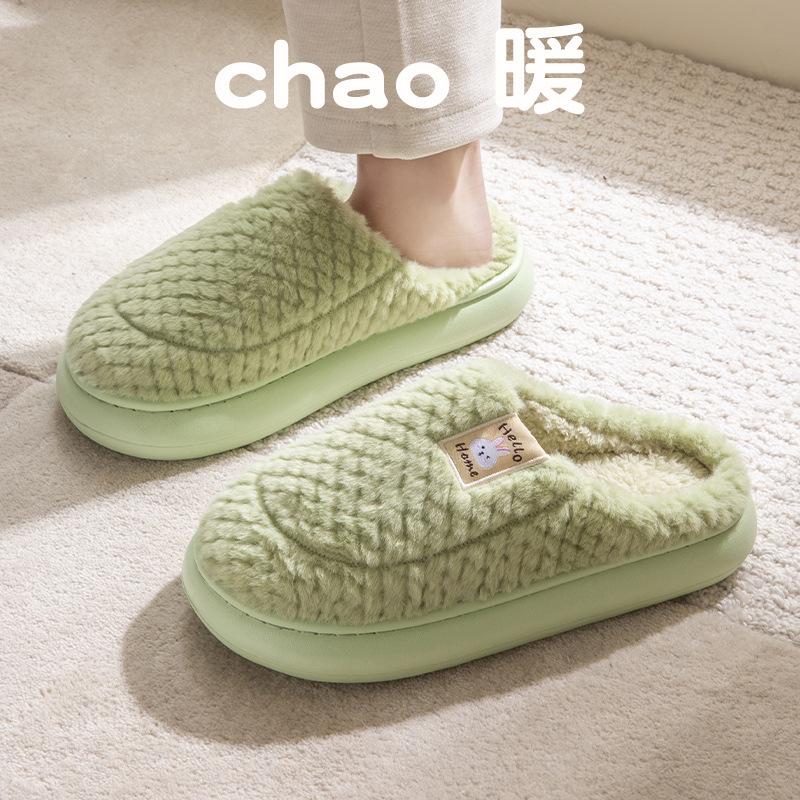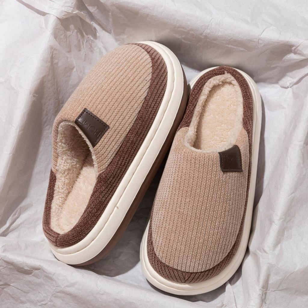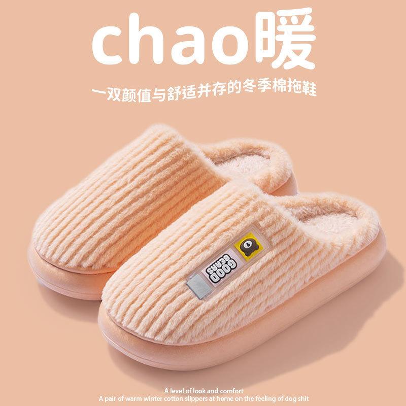 Хлопковые тапочки женские бархатные утолщенные зимние на толстой подошве новые нескользящие для дома и послеродового периода домашние комнатные шерстяные тапочки мужские