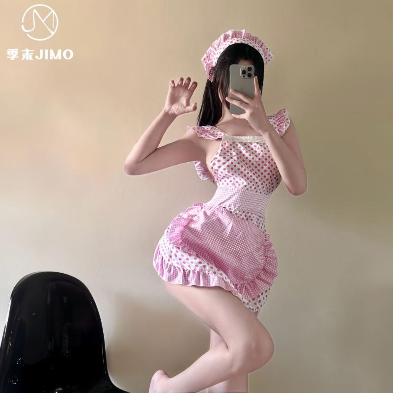 Sex lingerie end of season cos sweet little chef maid cute girl lace polka dot strap free women's suit