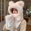 Корейский милый плюшевый комплект из трех предметов для женской осени и зимы Новый шарф, перчатки, шляпа, интегрированная плюс бархатная холодостойкая и теплая шляпа