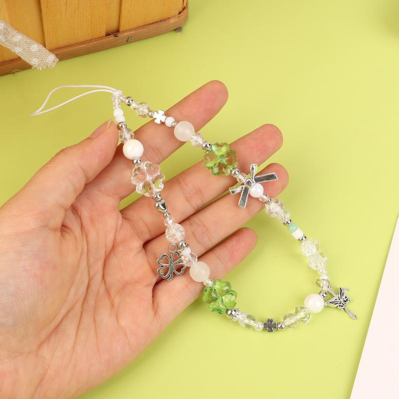 Счастливый четырехлистный клевер шнурок для телефона Y2K Сладкий свежий бисерная цепочка для телефона брелок браслет ремешок для мобильного телефона для подарков для девочки
