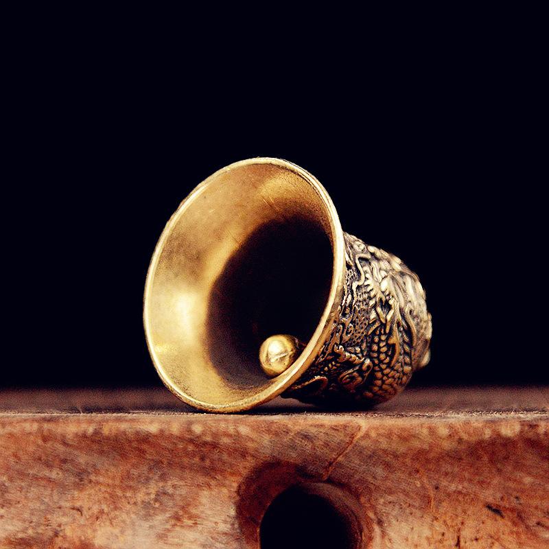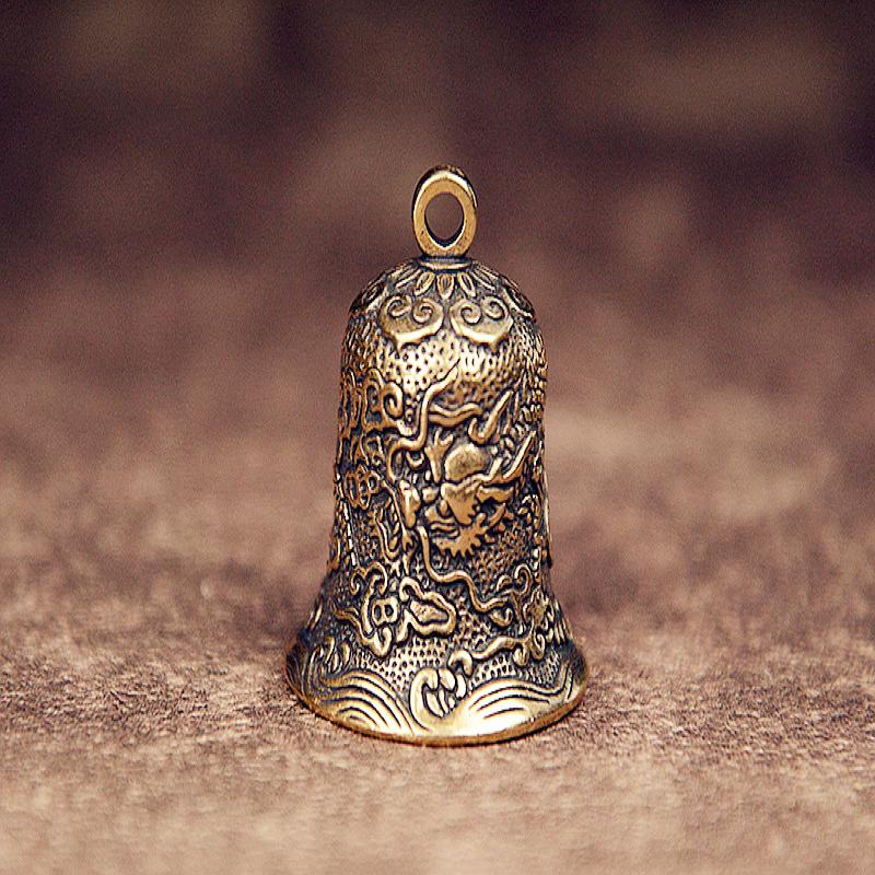 Винтажный латунный колокольчик с резным тотемом дракона, изысканные поделки, предметы коллекционирования, подвесное украшение, китайский фэн-шуй, настольное украшение