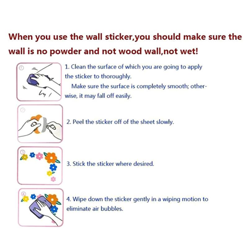 Внимание: Вы должны убедиться, что поверхность чистая и сухая, прежде чем придерживаться его. Любая жирная грязь или вода будет влиять на совершенство наклейки. Иногда в больших наклейках могут появляться пузырьки, если это произойдет, пожалуйста, удалите пузырь или просто закрепите его. Когда стена мокрая по каким-то неожиданным причинам, это может оказать плохое влияние на наклейку, когда это происходит, пожалуйста, высушите стену и наклейку с помощью воздуходувки или просто приклейте ее снова, когда стена высохнет.